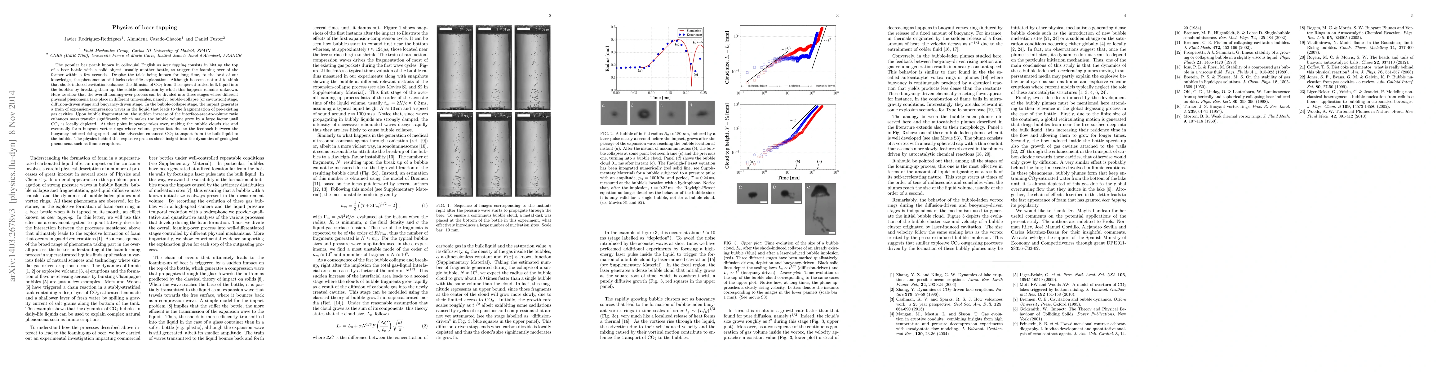 This paper investigates the physics behind the beer tapping phenomenon, revealing that it involves three stages: bubble-collapse, diffusion-driven, and buoyancy-driven. The impact generates cavitation, significantly enhancing CO$_2$ diffusion and leading to rapid bubble formation and growth, followed by buoyant vortex ring formation.