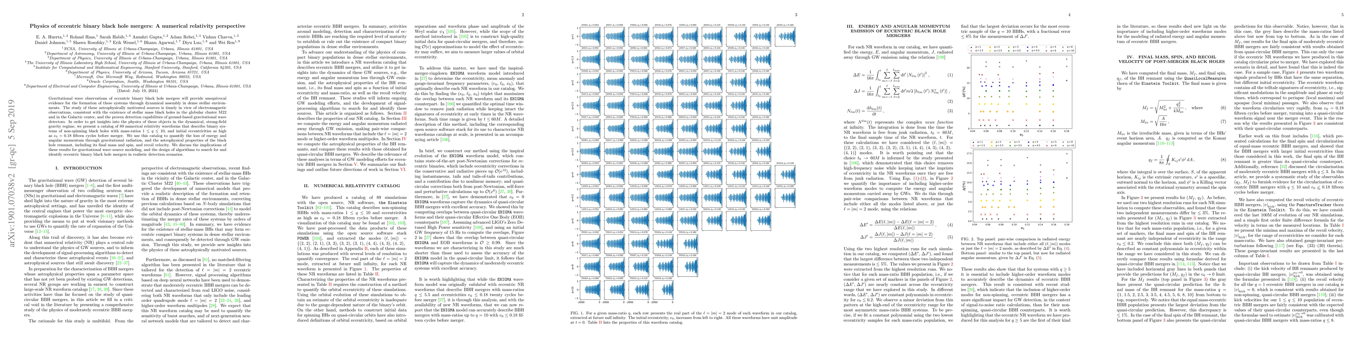 The paper presents a comprehensive numerical relativity waveform catalog for eccentric binary black hole mergers, providing detailed analysis of their physical properties and implications for gravitational wave detection.