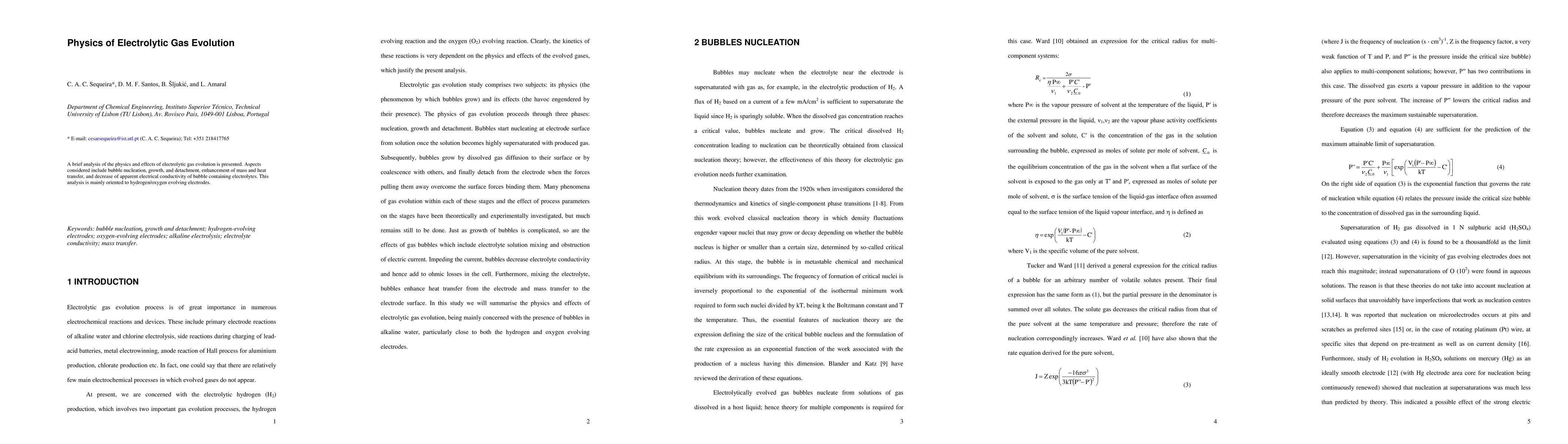 This paper analyzes the physics of electrolytic gas evolution, focusing on bubble nucleation, growth, and detachment processes, and their impact on mass and heat transfer, as well as the reduction in electrical conductivity in electrolytes generating hydrogen and oxygen.