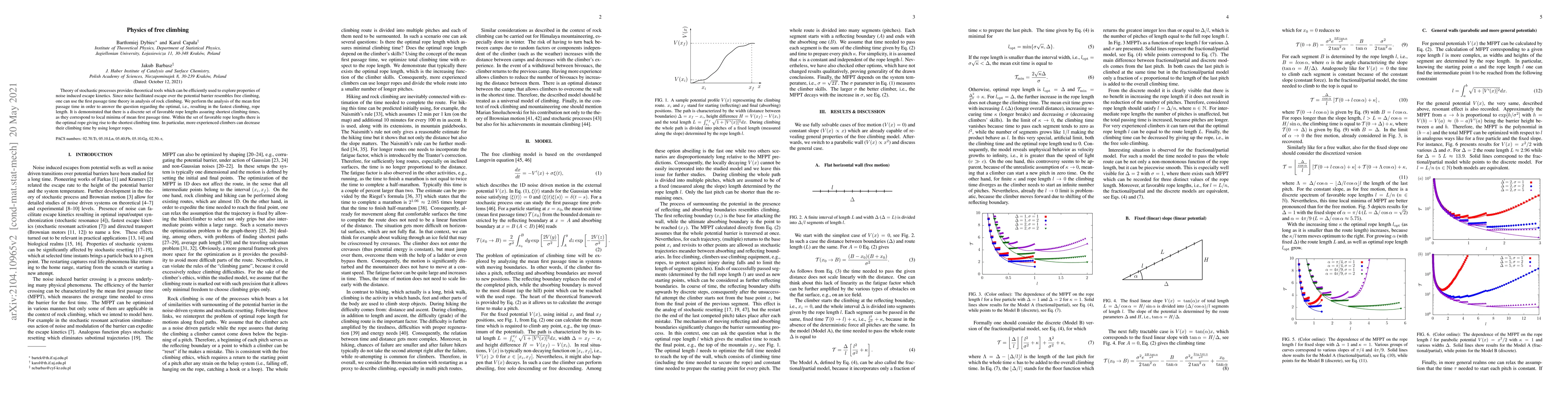 Theory of stochastic processes provides theoretical tools which can be efficiently used to explore properties of noise induced escape kinetics. Since noise facilitated escape over the potential barrier resembles free climbing, one can use the first passage time theory in analysis of rock climbing. We perform the analysis of the mean first passage time in order to answer the question regarding the optimal, i.e., resulting in the fastest climbing, rope length. It is demonstrated that there is a discrete set of favorable rope lengths assuring shortest climbing times, as they correspond to local minima of mean first passage time. Within the set of favorable rope lengths there is the optimal rope giving rise to the shortest climbing time. In particular, more experienced climbers can decrease their climbing time by using longer ropes.
