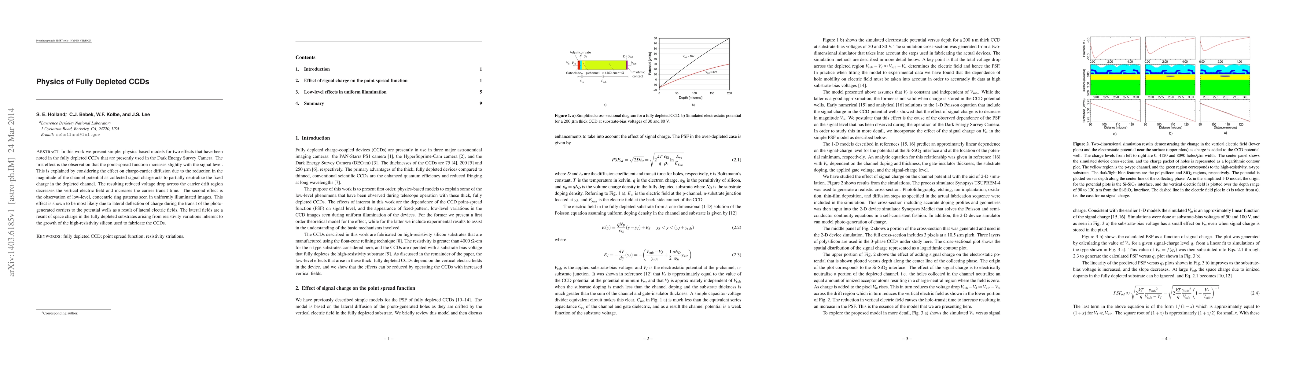 Researchers developed physics-based models to explain two effects in fully depleted CCDs: increased point-spread function with signal level due to charge-carrier diffusion changes and low-level ring patterns caused by lateral electric fields and space charge in the substrate.