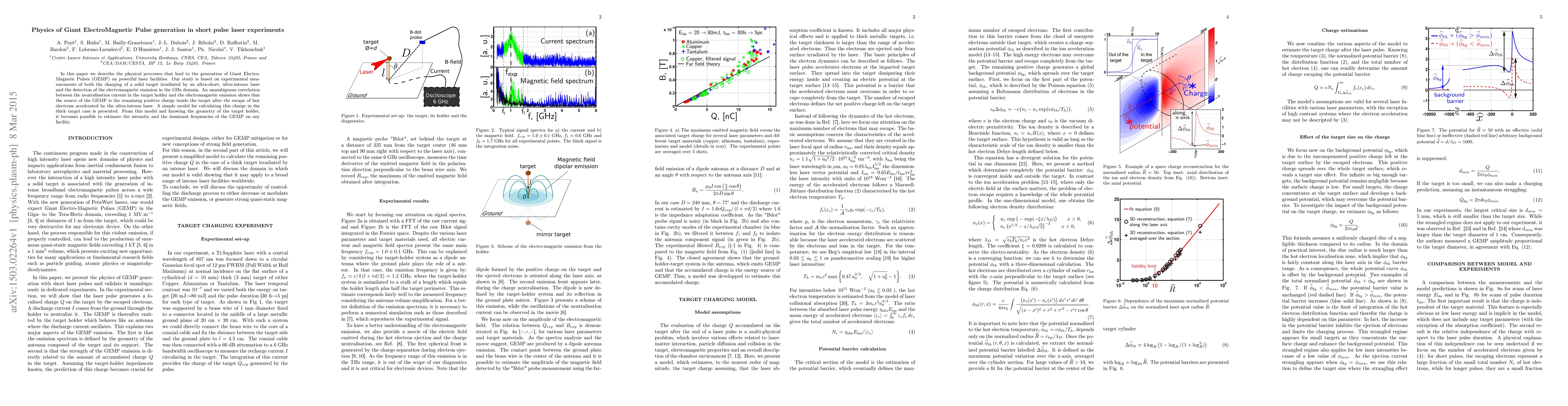 Researchers discovered that Giant ElectroMagnetic Pulses are generated in short pulse laser experiments when a powerful laser accelerates electrons to escape from a target, leaving behind positive charge that neutralizes rapidly, producing an electromagnetic emission.
