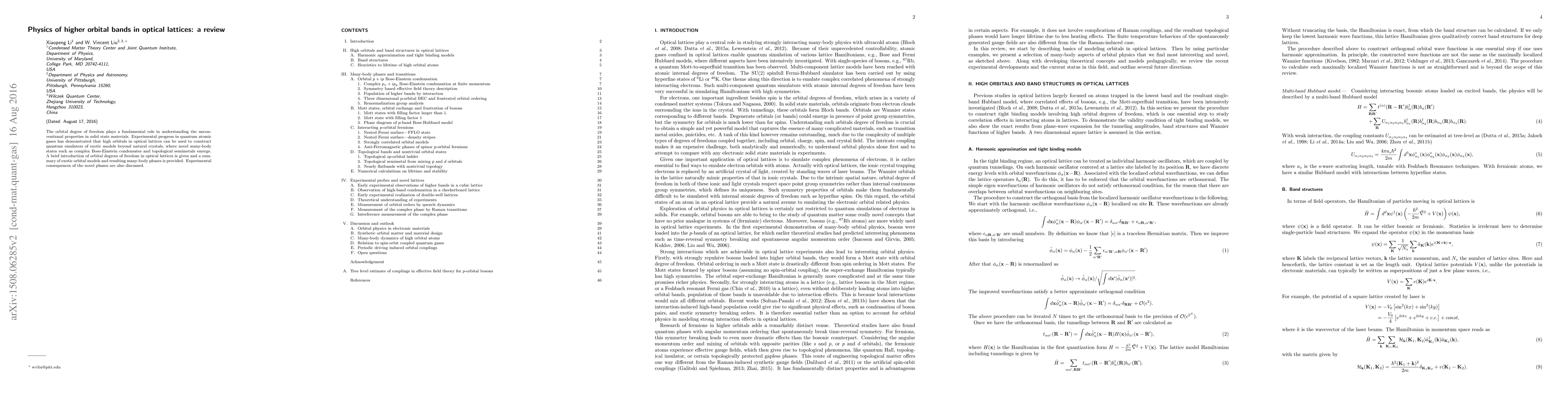 This paper reviews the physics of higher orbital bands in optical lattices, emphasizing their role in constructing quantum emulators for exotic models. It summarizes novel many-body states like complex Bose-Einstein condensation and topological semimetals, and discusses their experimental implications.