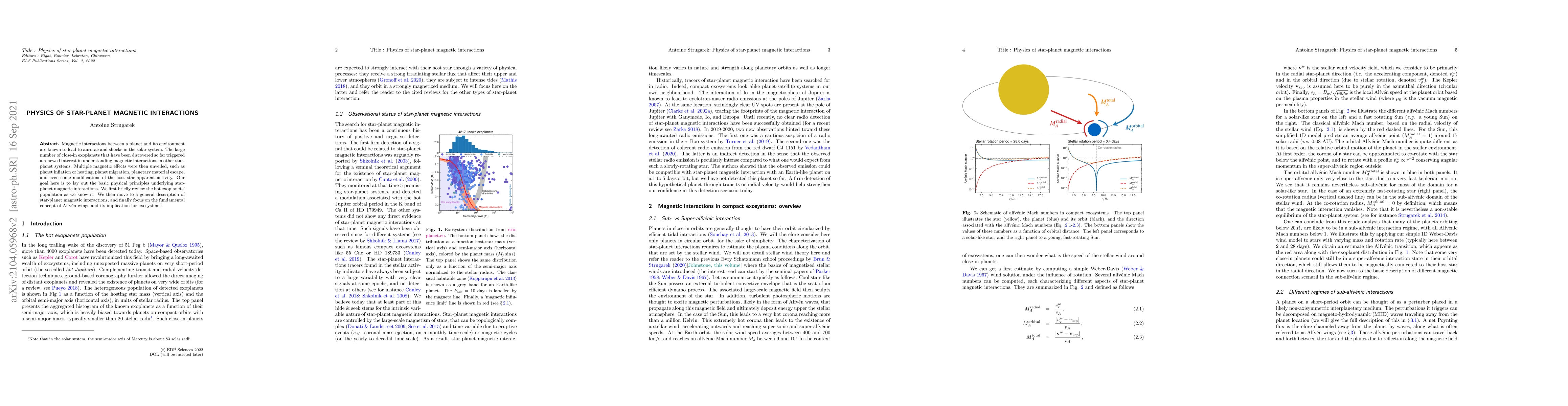 Magnetic interactions between a planet and its environment are known to lead to aurorae and shocks in the solar system. The large number of close-in exoplanets that have been discovered so far triggered a renewed interest in understanding magnetic interactions in other star-planet systems. Multiple magnetic effects were then unveiled, such as planet inflation or heating, planet migration, planetary material escape, and even some modifications of the host star apparent activity. Our goal here is to lay out the basic physical principles underlying star-planet magnetic interactions. We first briefly review the hot exoplanets' population as we know it. We then move to a general description of star-planet magnetic interactions, and finally focus on the fundamental concept of Alfv\'en wings and its implication for exosystems.