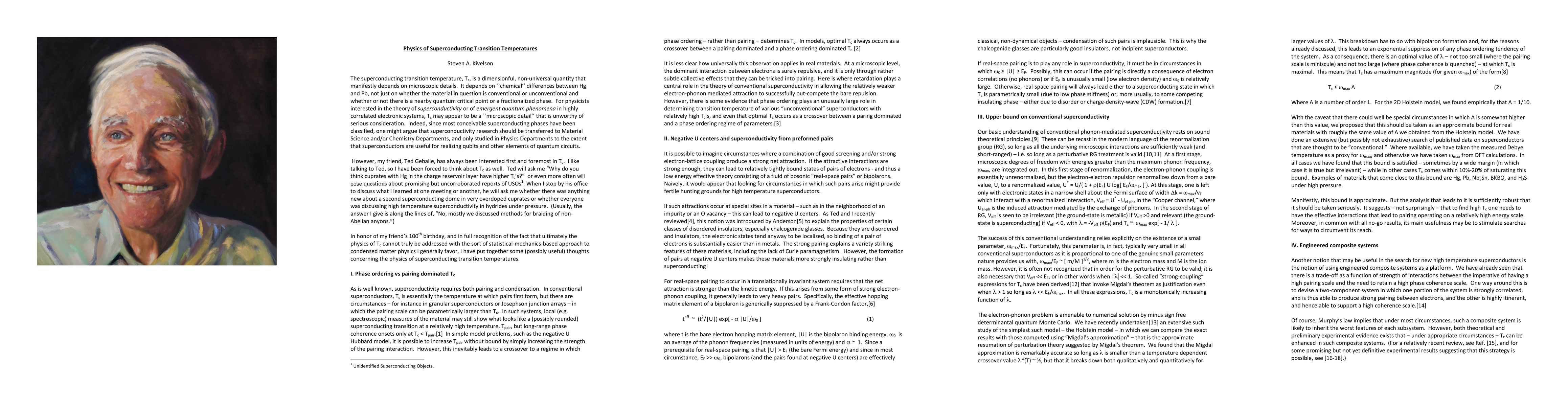 This paper was written in honor of my friend Ted Geballe's 100th birthday. It concerns the physics of the superconducting Tc. Tc is a dimensional quantity, and so depends on microscopic details of a material making it a strange quantity to consider from the perspective of simple paradigmatic models or effective field theories. Still, there are certain qualitative lessons that can be learned even from such approaches which may give some insight into the physics of Tc - and where to look for it. Given my friend's relentless interest in this subject, this seems to be a good place to discuss these issues.