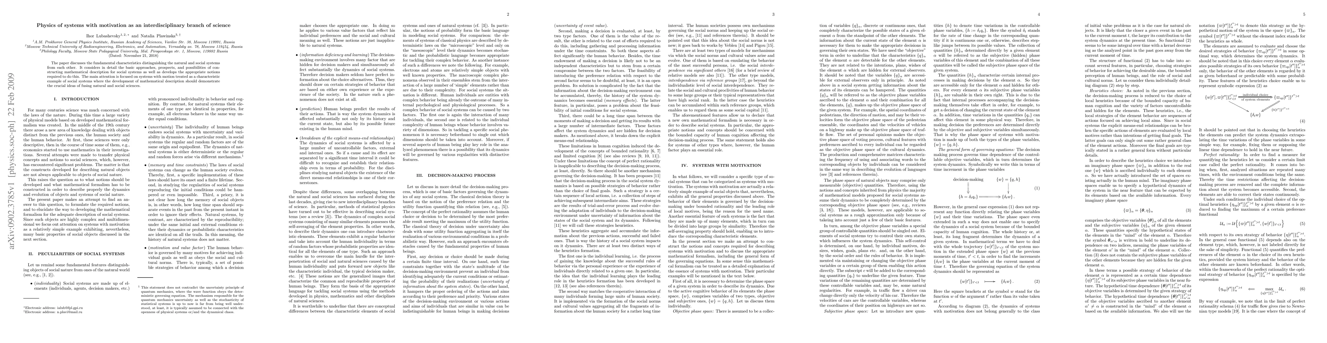 This paper explores the fundamental differences between natural and social systems and proposes mathematical frameworks for describing social systems, emphasizing the integration of natural and social sciences through the example of systems with motion.