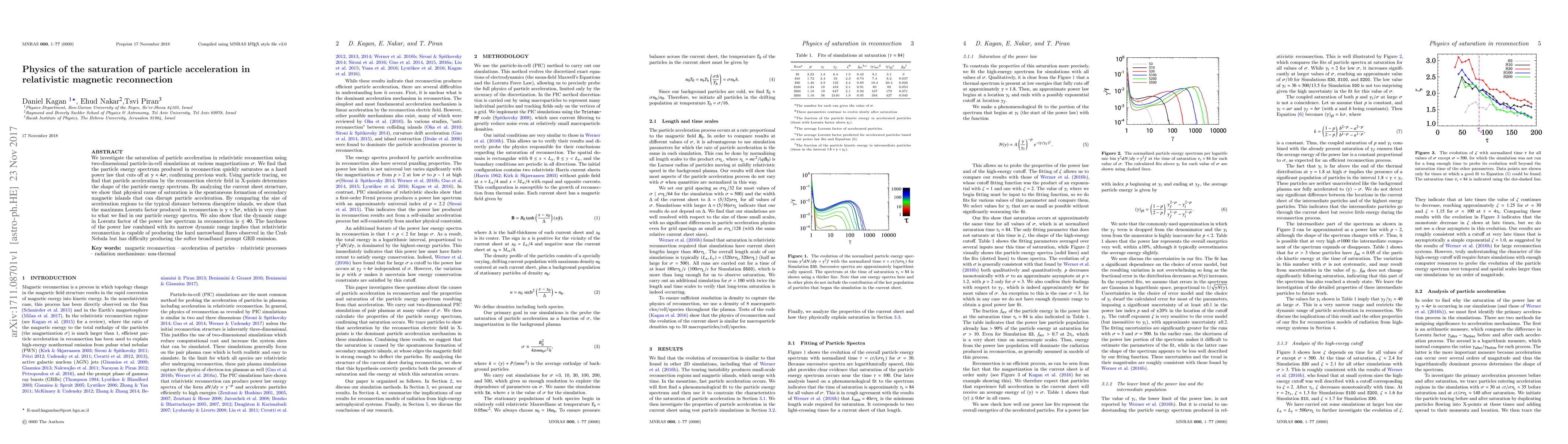 This paper investigates the saturation of particle acceleration in relativistic magnetic reconnection through simulations, revealing that the energy spectrum saturates as a hard power law cut-off at γ~4σ, primarily due to the formation of secondary magnetic islands disrupting acceleration. The maximum Lorentz factor is found to be γ~5σ, suggesting reconnection can produce hard flares but not broadband emissions.