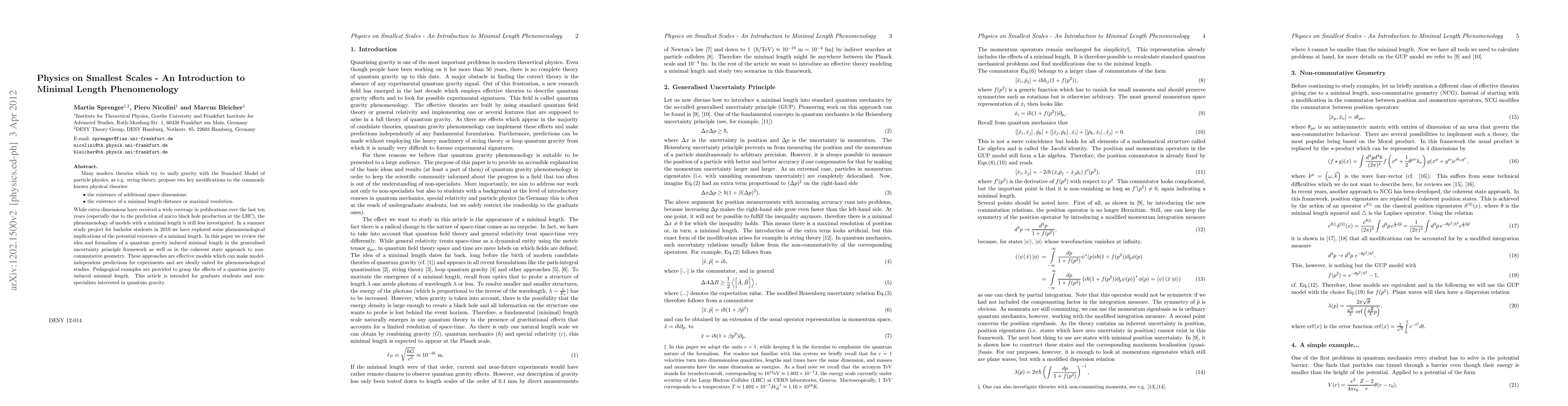 Many modern theories which try to unify gravity with the Standard Model of particle physics, as e.g. string theory, propose two key modifications to the commonly known physical theories: i) the existence of additional space dimensions; ii) the existence of a minimal length distance or maximal resolution. While extra dimensions have received a wide coverage in publications over the last ten years (especially due to the prediction of micro black hole production at the LHC), the phenomenology of models with a minimal length is still less investigated. In a summer study project for bachelor students in 2010 we have explored some phenomenological implications of the potential existence of a minimal length. In this paper we review the idea and formalism of a quantum gravity induced minimal length in the generalised uncertainty principle framework as well as in the coherent state approach to non-commutative geometry. These approaches are effective models which can make model-independent predictions for experiments and are ideally suited for phenomenological studies. Pedagogical examples are provided to grasp the effects of a quantum gravity induced minimal length. This article is intended for graduate students and non-specialists interested in quantum gravity.