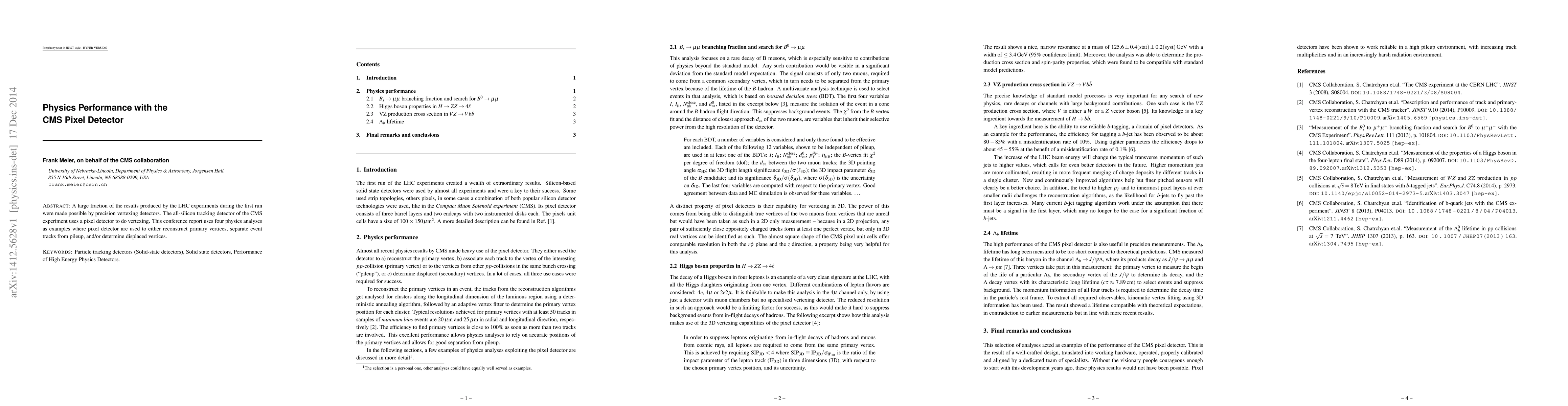 The paper presents a comprehensive analysis of the CMS pixel detector's performance in various physics analyses, highlighting its crucial role in precision vertexing, background suppression, and new physics searches at the LHC.