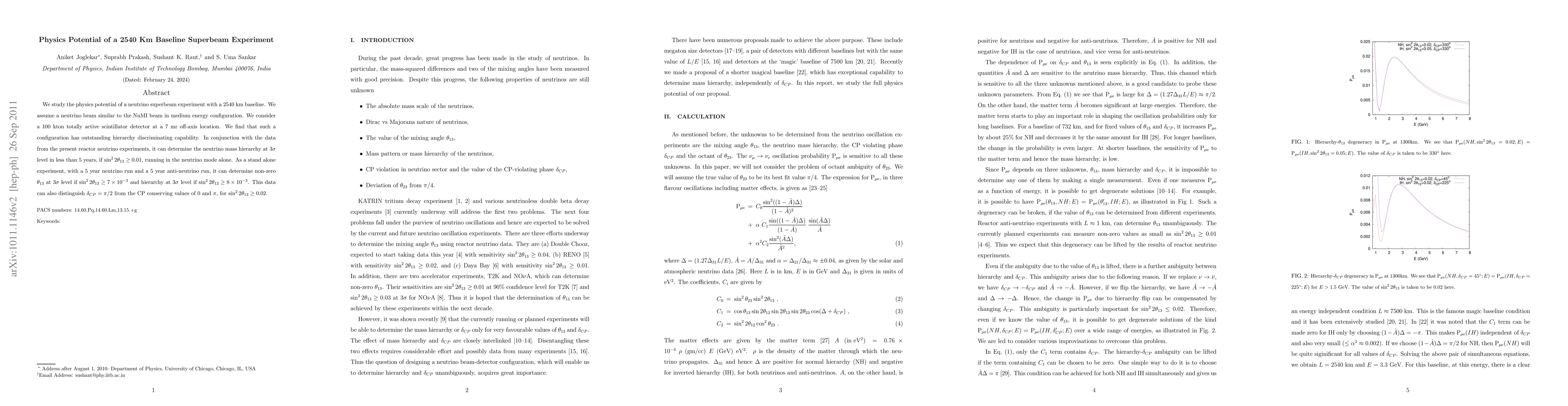 The paper presents a detailed analysis of a 2540 km baseline neutrino superbeam experiment's physics potential, using the GLoBES software to simulate the setup and evaluate its performance in determining neutrino mass hierarchy and CP violation.