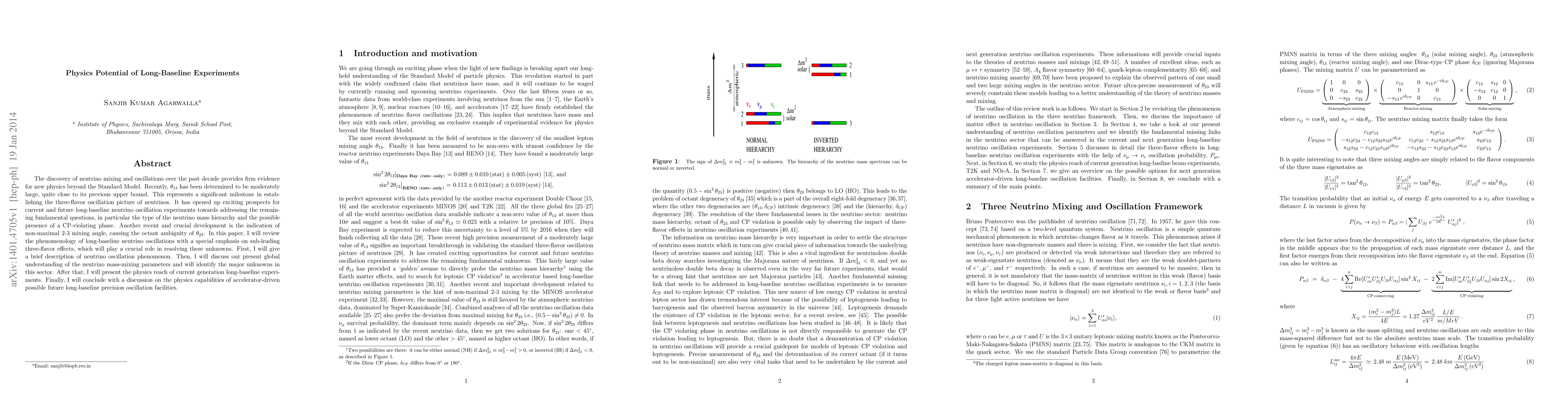 This paper reviews the physics potential of long-baseline neutrino oscillation experiments, focusing on resolving the neutrino mass hierarchy and CP-violating phase, and discusses the current understanding and future prospects of these experiments. It emphasizes the role of sub-leading three-flavor effects in addressing these fundamental questions.