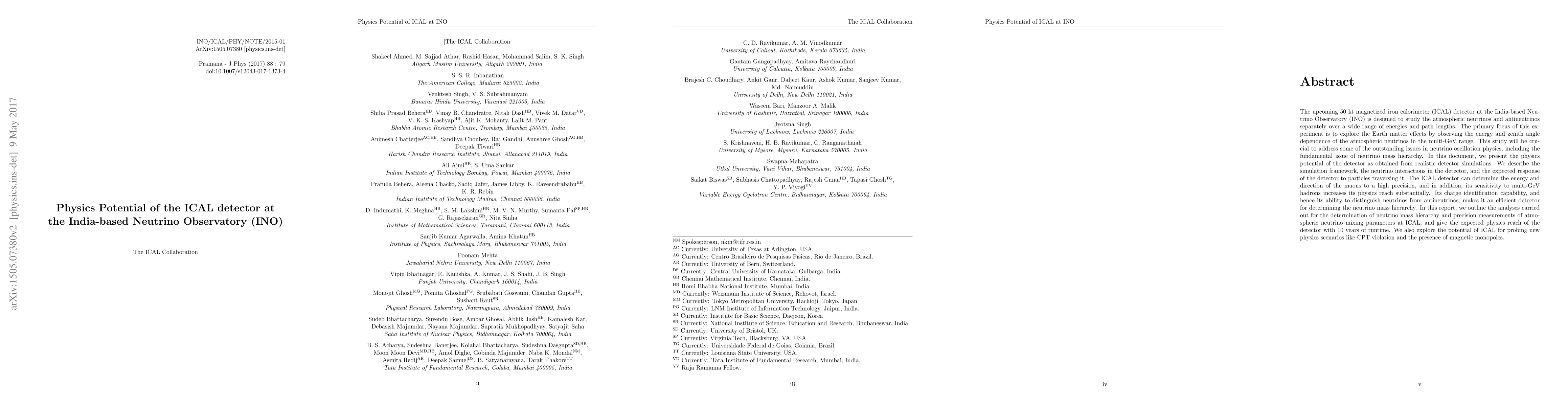 The paper presents a detailed simulation framework for the ICAL detector, including neutrino interactions and detector response, which serves as a foundation for understanding its physics capabilities.