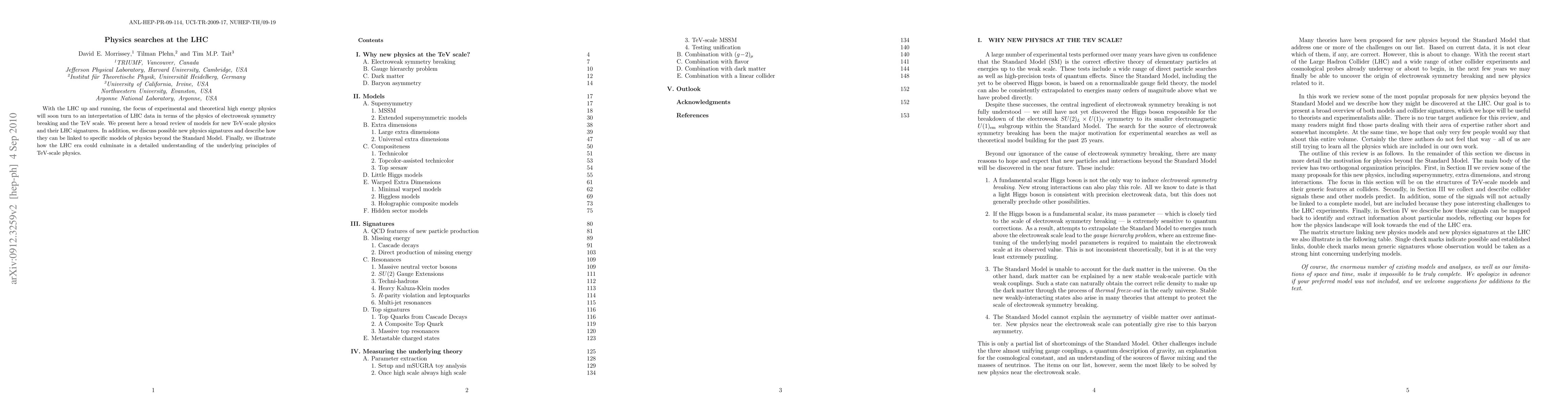 With the LHC up and running, the focus of experimental and theoretical high energy physics will soon turn to an interpretation of LHC data in terms of the physics of electroweak symmetry breaking and the TeV scale. We present here a broad review of models for new TeV-scale physics and their LHC signatures. In addition, we discuss possible new physics signatures and describe how they can be linked to specific models of physics beyond the Standard Model. Finally, we illustrate how the LHC era could culminate in a detailed understanding of the underlying principles of TeV-scale physics.