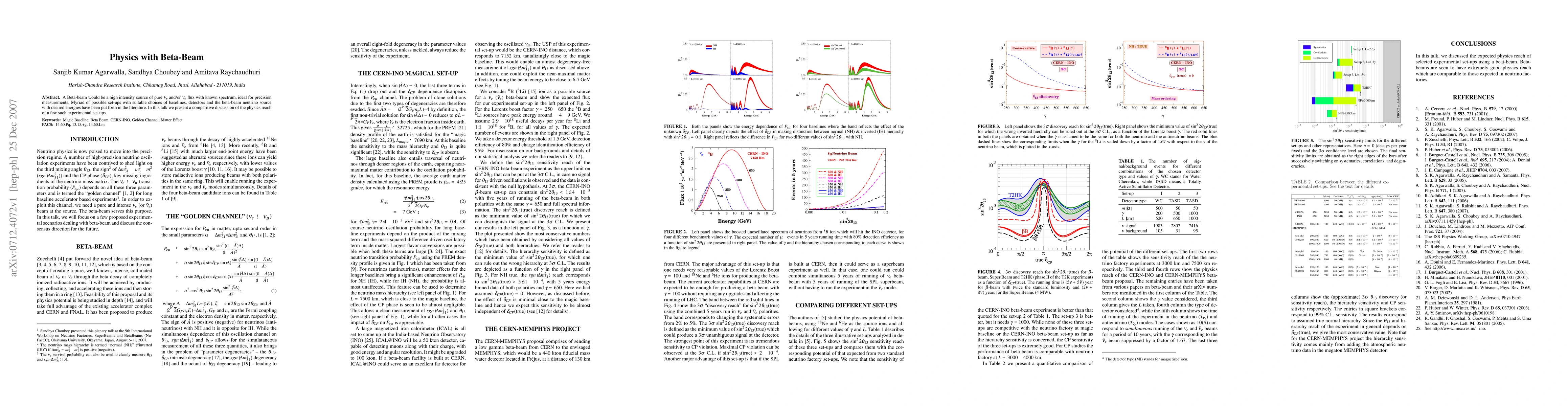 This paper discusses various experimental setups for a Beta-beam, a high-intensity source of electron neutrinos or antineutrinos, and compares their physics reach, focusing on precision measurements and optimal baselines, detectors, and energies.