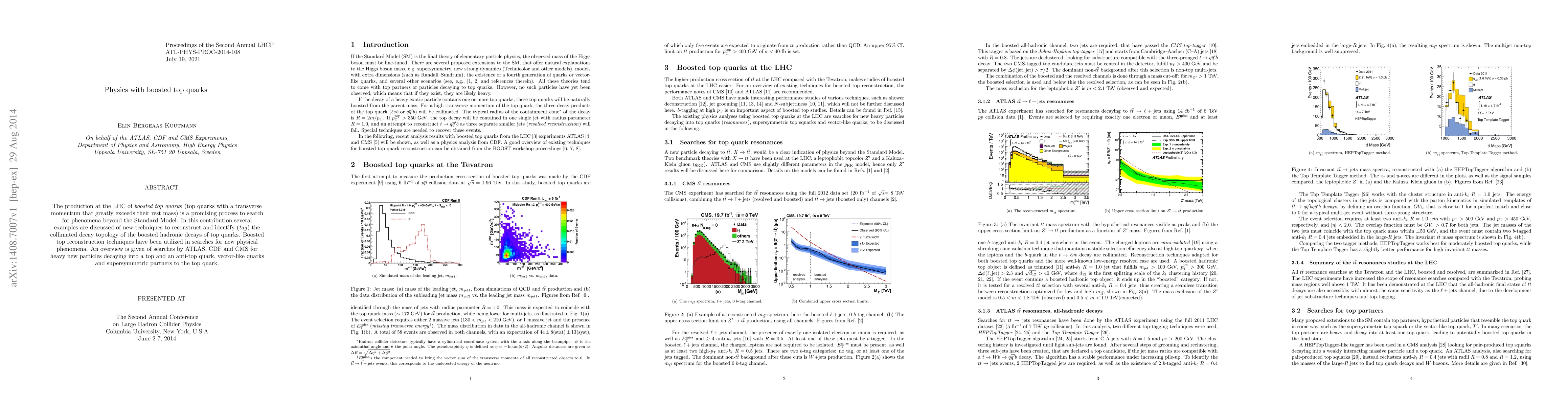 This paper discusses new techniques for reconstructing and identifying boosted top quarks at the LHC, focusing on their collimated hadronic decay topology. It reviews the use of these techniques in searches for new physics beyond the Standard Model by ATLAS, CDF, and CMS collaborations.