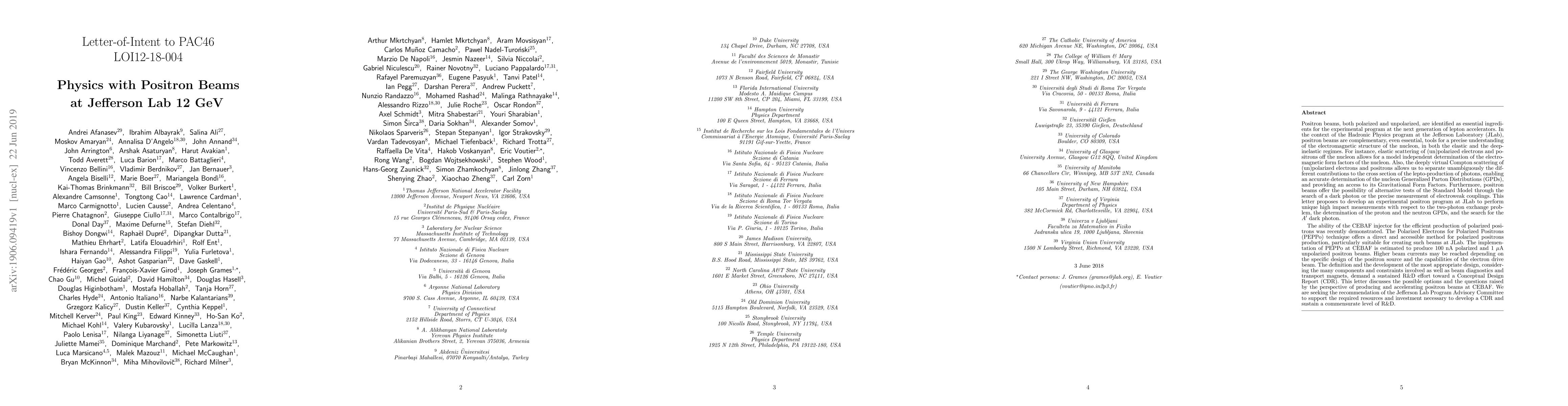 Positron beams, both polarized and unpolarized, are identified as essential ingredients for the experimental program at the next generation of lepton accelerators. In the context of the Hadronic Physics program at the Jefferson Laboratory (JLab), positron beams are complementary, even essential, tools for a precise understanding of the electromagnetic structure of the nucleon, in both the elastic and the deep-inelastic regimes. For instance, elastic scattering of (un)polarized electrons and positrons off the nucleon allows for a model independent determination of the electromagnetic form factors of the nucleon. Also, the deeply virtual Compton scattering of (un)polarized electrons and positrons allows us to separate unambiguously the different contributions to the cross section of the lepto-production of photons, enabling an accurate determination of the nucleon Generalized Parton Distributions (GPDs), and providing an access to its Gravitational Form Factors. Furthermore, positron beams offer the possibility of alternative tests of the Standard Model through the search of a dark photon or the precise measurement of electroweak couplings. This letter proposes to develop an experimental positron program at JLab to perform unique high impact measurements with respect to the two-photon exchange problem, the determination of the proton and the neutron GPDs, and the search for the $A^{\prime}$ dark photon.