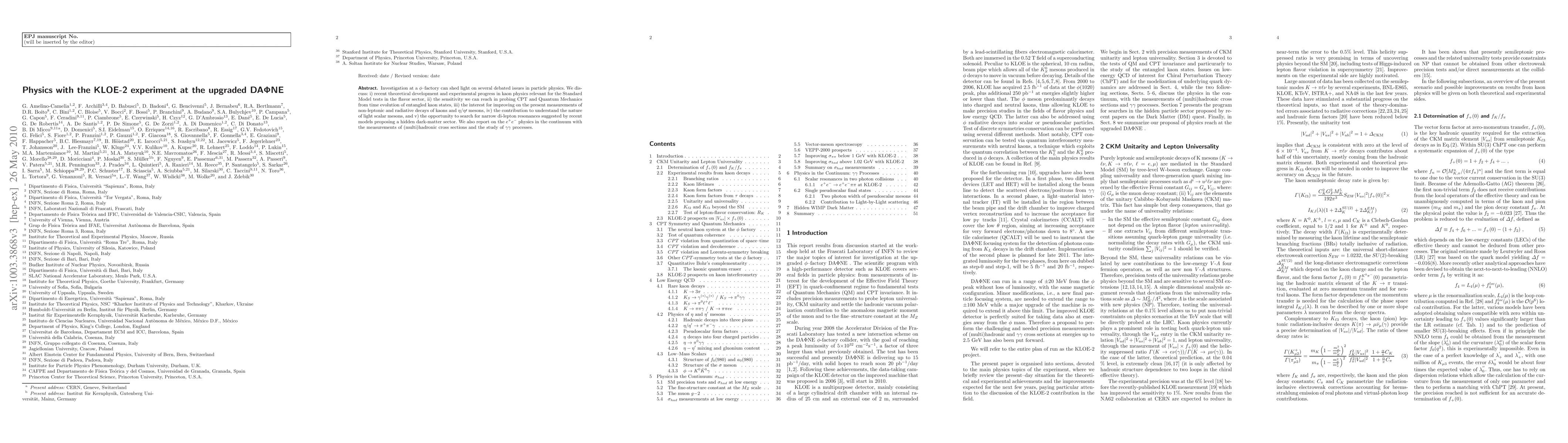 Investigation at a $\phi$--factory can shed light on several debated issues in particle physics. We discuss: i) recent theoretical development and experimental progress in kaon physics relevant for the Standard Model tests in the flavor sector, ii) the sensitivity we can reach in probing CPT and Quantum Mechanics from time evolution of entangled kaon states, iii) the interest for improving on the present measurements of non-leptonic and radiative decays of kaons and eta/eta$^\prime$ mesons, iv) the contribution to understand the nature of light scalar mesons, and v) the opportunity to search for narrow di-lepton resonances suggested by recent models proposing a hidden dark-matter sector. We also report on the $e^+ e^-$ physics in the continuum with the measurements of (multi)hadronic cross sections and the study of gamma gamma processes.