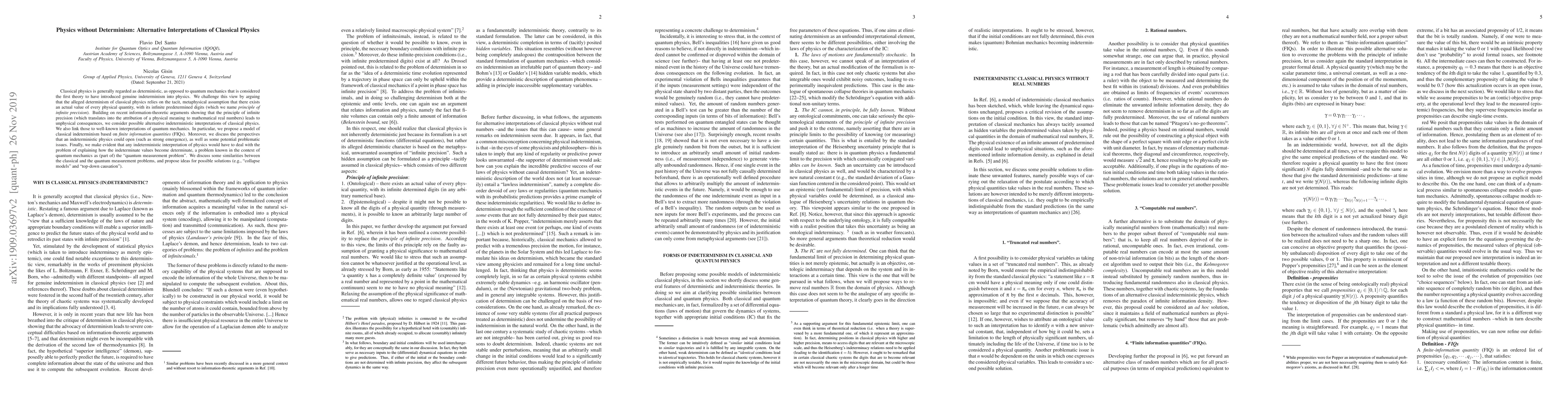 This paper challenges the deterministic view of classical physics, proposing an alternative indeterministic interpretation based on finite information quantities. It discusses the implications of such a shift, including potential emergence phenomena and parallels with the quantum measurement problem.