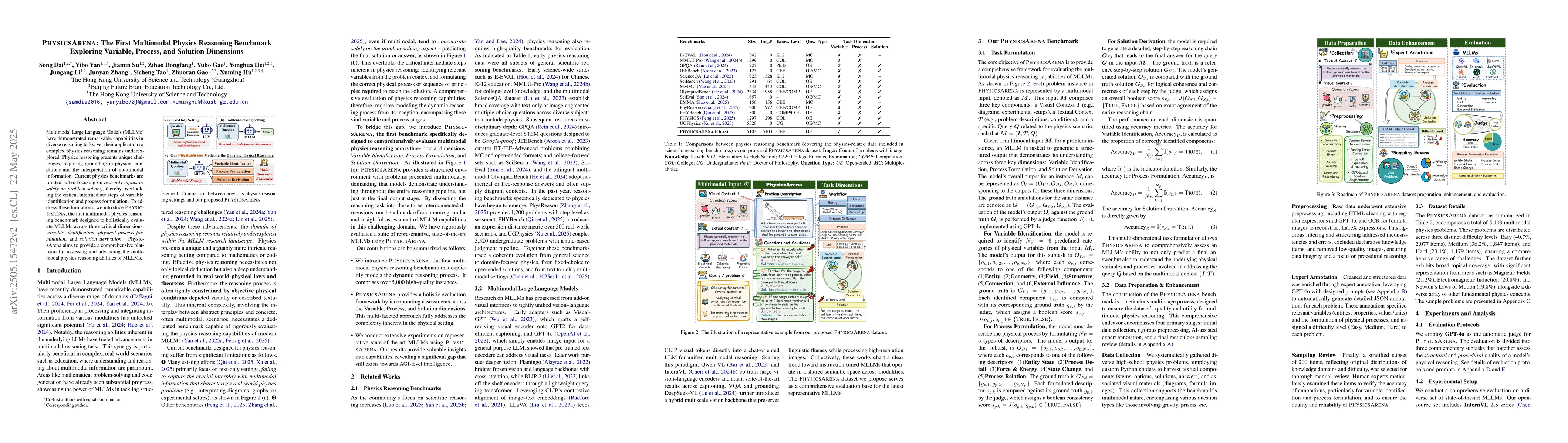 Unlike existing benchmarks, PhysicsArena uniquely integrates variable identification and process formulation, providing a more holistic assessment of physics reasoning capabilities in MLLMs.
