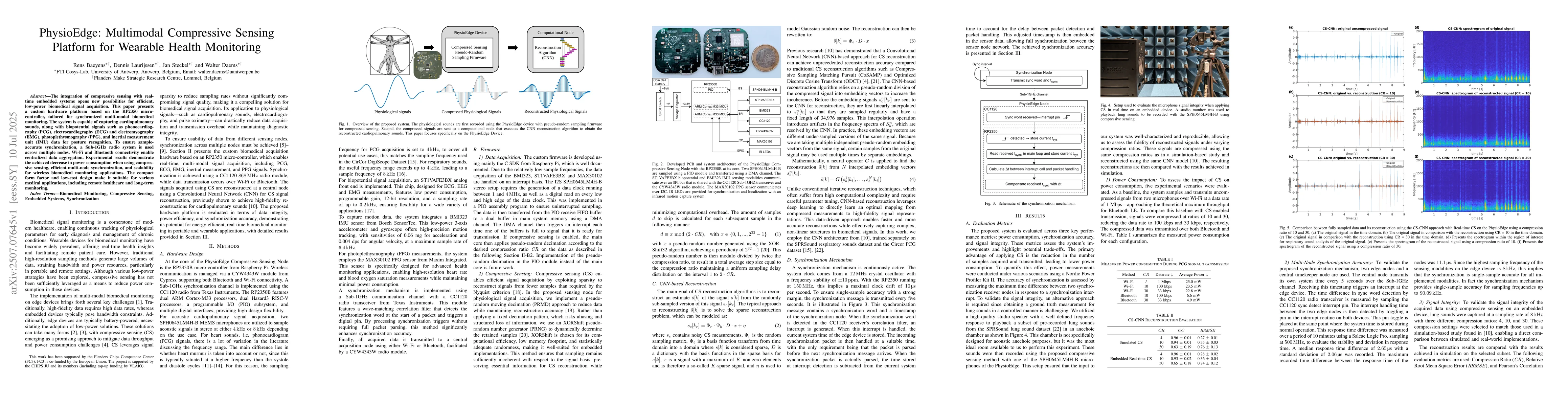 The integration of compressive sensing with real-time embedded systems opens new possibilities for efficient, low-power biomedical signal acquisition. This paper presents a custom hardware platform based on the RP2350 micro-controller, tailored for synchronized multi-modal biomedical monitoring. The system is capable of capturing cardiopulmonary sounds, along with biopotential signals such as phonocardiography (PCG), electrocardiography (ECG) and electromyography (EMG), photoplethysmography (PPG), and inertial measurement unit (IMU) data for posture recognition. To ensure sample-accurate synchronization, a Sub-1GHz radio system is used across multiple nodes. Wi-Fi and Bluetooth connectivity enable centralized data aggregation. Experimental results demonstrate the achieved decrease in power consumption when using compressive sensing, efficient multi-node synchronization, and scalability for wireless biomedical monitoring applications. The compact form factor and low-cost design make it suitable for various medical applications, including remote healthcare and long-term monitoring.