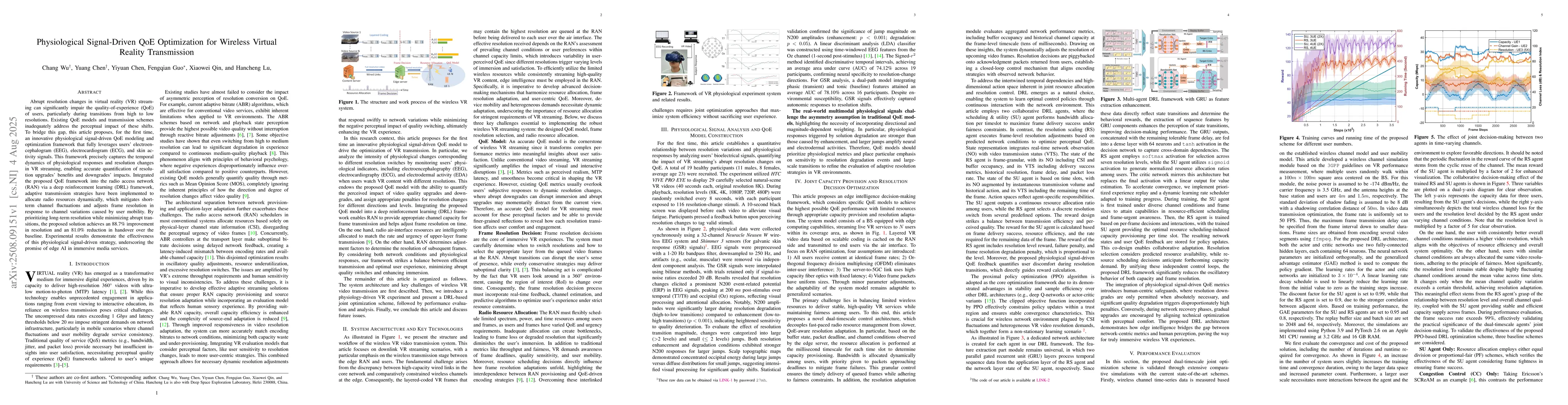 This research introduces a novel QoE optimization framework for VR streaming that uses physiological signals (EEG, ECG, skin activity) to minimize the negative impact of resolution changes. By integrating this framework into a RAN via deep reinforcement learning, the method dynamically allocates radio resources, reducing handovers and improving resolution stability. The approach results in an 88.7% increase in high-resolution transmission and an 81.0% decrease in handovers, showcasing the potential of edge AI for immersive media services.