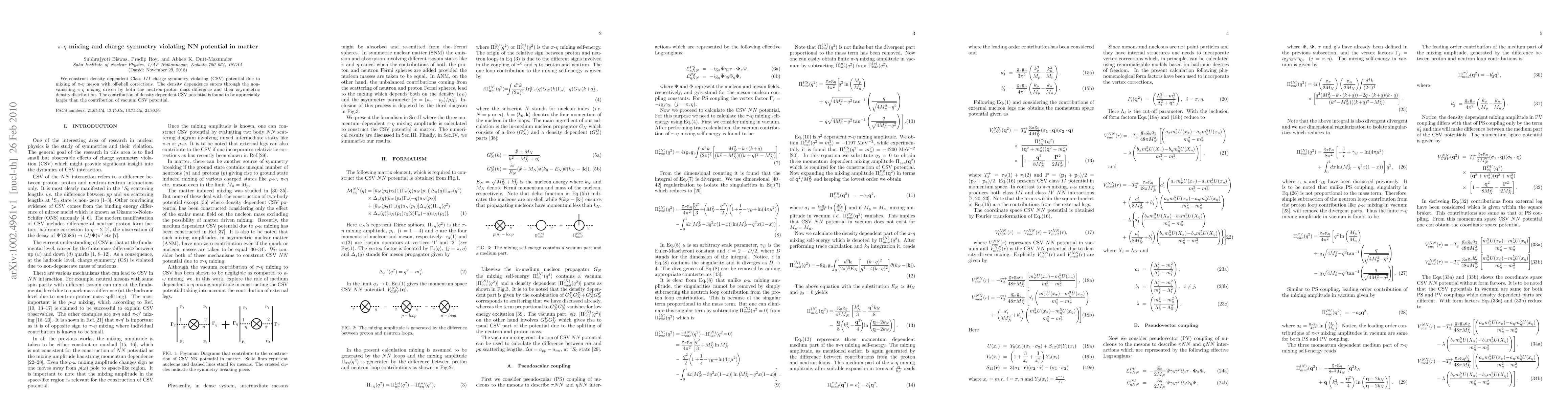 We construct density dependent Class $III$ charge symmetry violating (CSV) potential due to mixing of $\pi$-$\eta$ meson with off-shell corrections. The density dependence enters through the non-vanishing $\pi$-$\eta$ mixing driven by both the neutron-proton mass difference and their asymmetric density distribution. The contribution of density dependent CSV potential is found to be appreciably larger than the contribution of vacuum CSV potential.