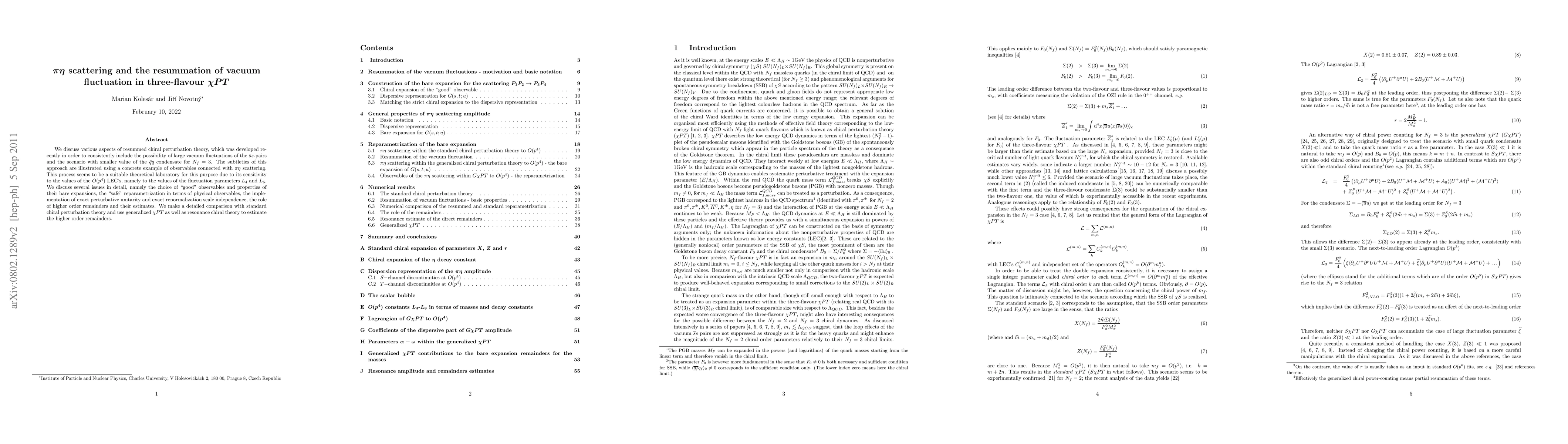 Researchers explore a new approach to Chiral Perturbation Theory that includes large vacuum fluctuations for N_f=3 flavours, using pi-eta scattering as a test case. The study highlights key findings on resumming vacuum fluctuations, choosing observables, and estimating higher-order remainders.