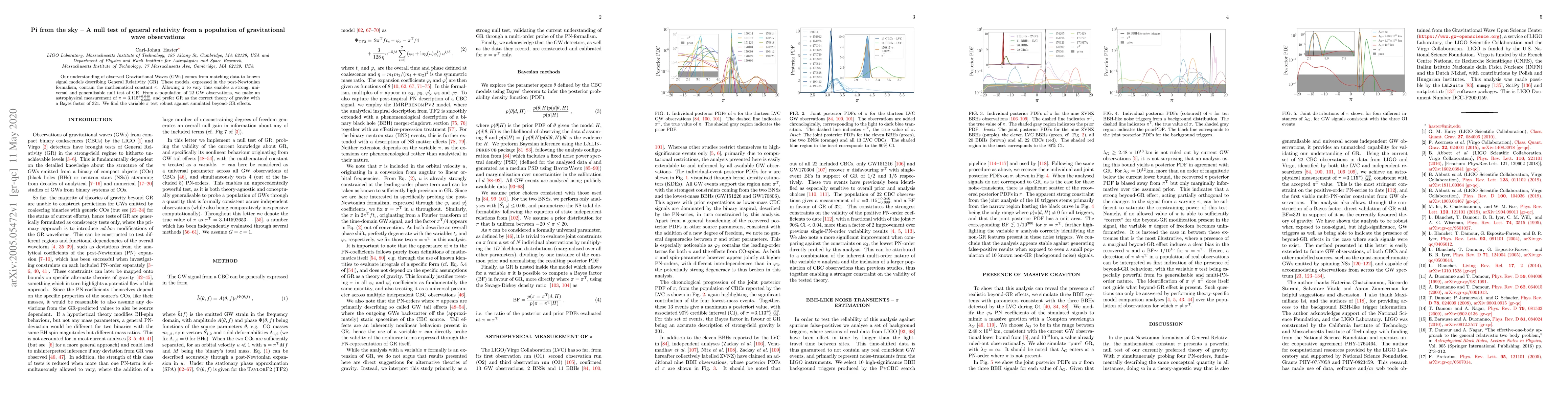 This study tests General Relativity (GR) by measuring the mathematical constant $\pi$ from 22 gravitational wave observations, finding $\pi=3.115^{+0.048}_{-0.088}$ and supporting GR with a Bayes factor of 321, while demonstrating robustness against beyond-GR effects.