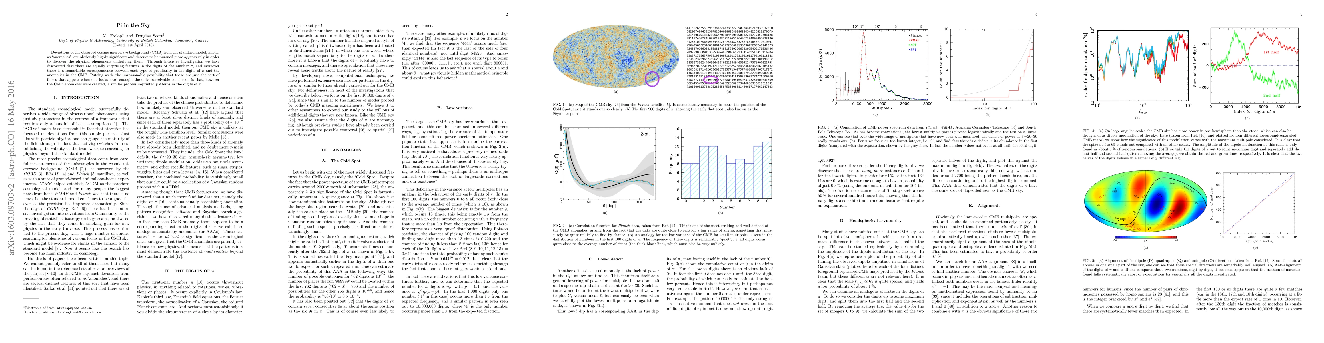 Deviations of the observed cosmic microwave background (CMB) from the standard model, known as "anomalies", are obviously highly significant and deserve to be pursued more aggressively in order to discover the physical phenomena underlying them. Through intensive investigation we have discovered that there are equally surprising features in the digits of the number $\pi$, and moreover there is a remarkable correspondence between each type of peculiarity in the digits of $\pi$ and the anomalies in the CMB. Putting aside the unreasonable possibility that these are just the sort of flukes that appear when one looks hard enough, the only conceivable conclusion is that, however the CMB anomalies were created, a similar process imprinted patterns in the digits of $\pi$.