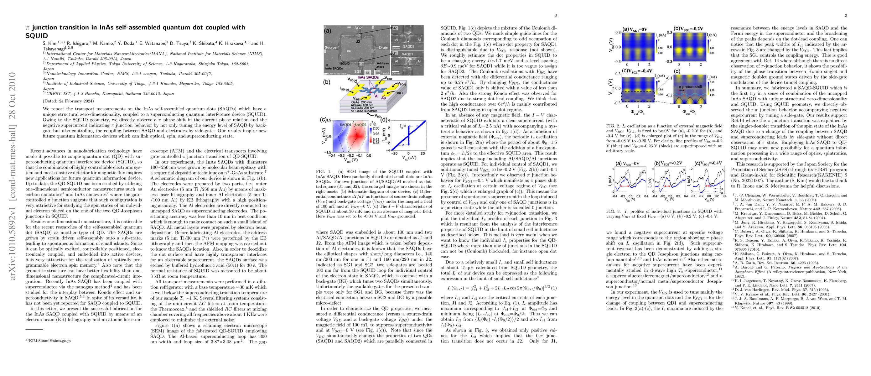 This paper reports transport measurements on InAs self-assembled quantum dots coupled to a SQUID, revealing a π phase shift in the current-phase relation indicative of π junction behavior. The study demonstrates control over the quantum dot's energy levels and coupling via gate tuning, suggesting potential for future quantum information devices.