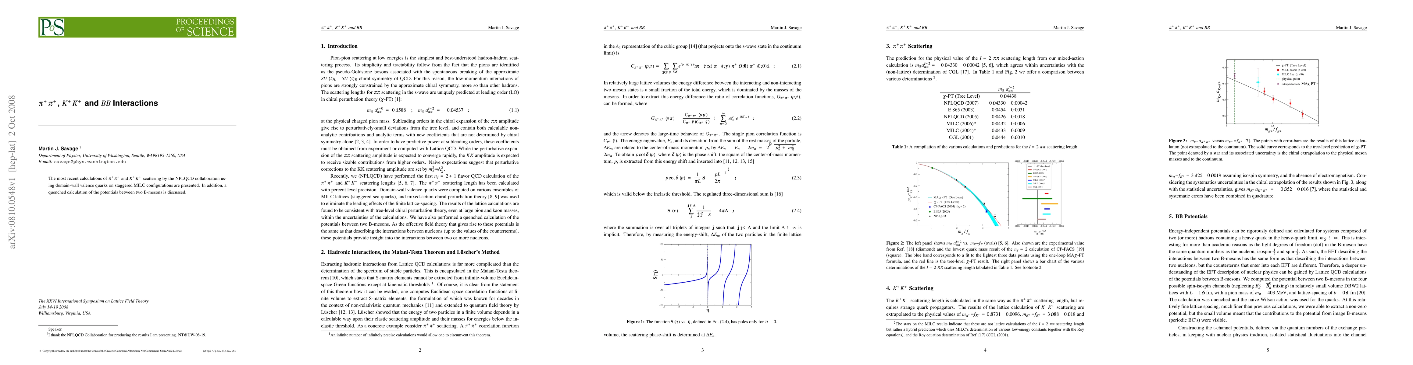 This paper presents recent NPLQCD calculations of pi+ pi+ and K+ K+ scattering using domain-wall valence quarks, and also discusses a quenched potential calculation for B meson interactions.