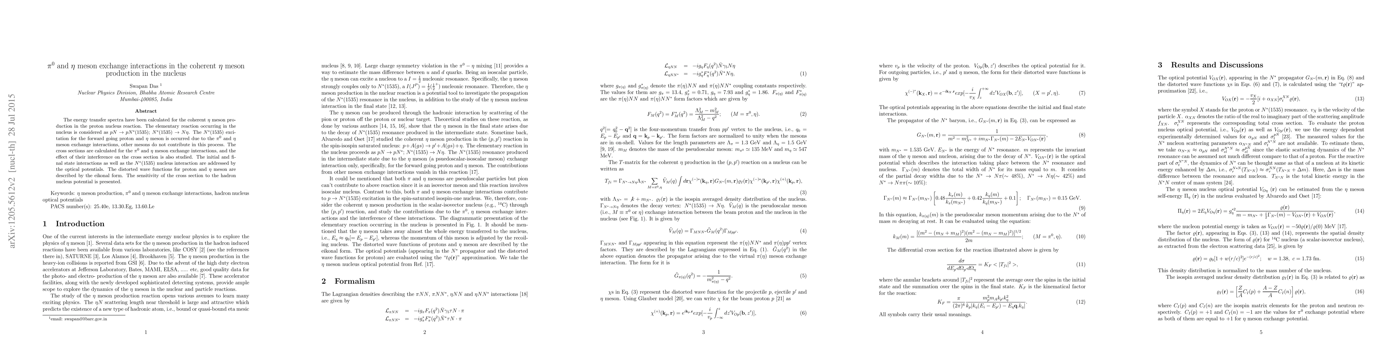 This paper investigates the coherent $\eta$ meson production in proton-nucleus reactions, focusing on $\pi^0$ and $\eta$ meson exchange interactions. It calculates the energy transfer spectra and cross sections for these interactions, highlighting their interference effects and sensitivity to hadron nucleus potentials.