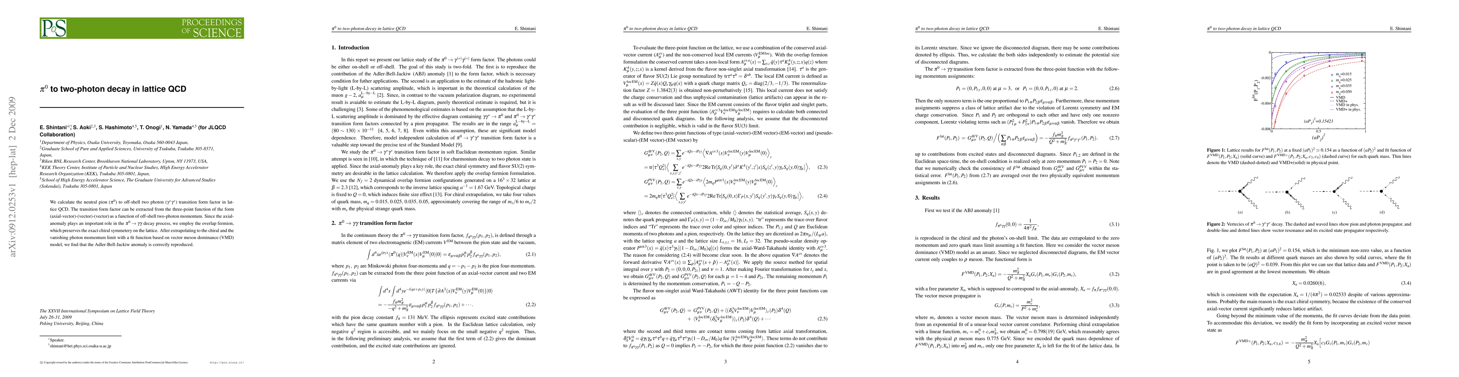 This study calculates the $\pi^0$ to off-shell two-photon transition form factor in lattice QCD using overlap fermions to preserve chiral symmetry. The results confirm the Adler-Bell-Jackiw anomaly, crucial for the $\pi^0 \to \gamma\gamma$ decay process.