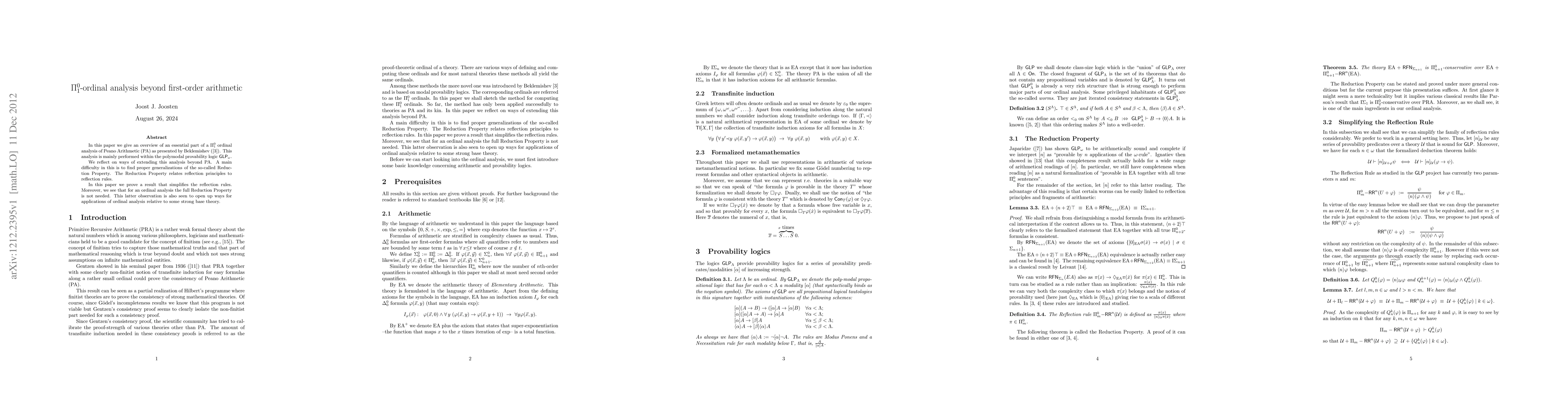 This paper provides an overview of Beklemishev’s Pi^0_1 ordinal analysis of Peano Arithmetic within polymodal provability logic GLP and discusses extending this analysis beyond PA. It simplifies reflection rules and argues that the full Reduction Property is not necessary for ordinal analysis, suggesting potential applications relative to stronger base theories.