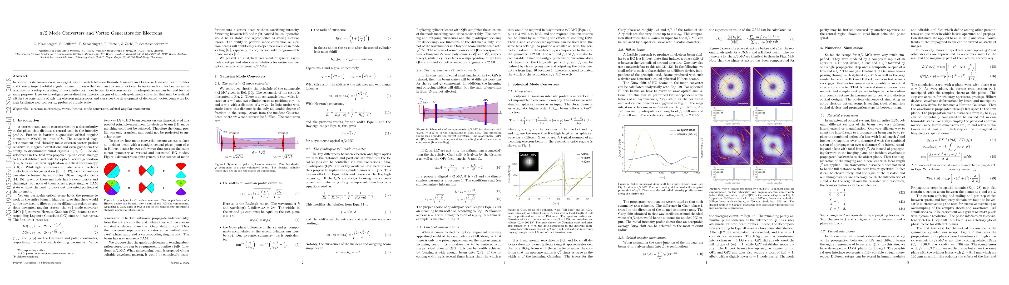 In optics, mode conversion is an elegant way to switch between Hermite Gaussian and Laguerre Gaussian beam profiles and thereby impart orbital angular momentum onto the beam and to create vortices. In optics such vortex beams can be produced in a setup consisting of two identical cylinder lenses. In electron optics, quadrupole lenses can be used for the same purpose. Here we investigate generalized asymmetric designs of a quadrupole mode converter that may be realized within the constraints of existing electron microscopes and can steer the development of dedicated vortex generators for high brilliance electron vortex probes of atomic scale.