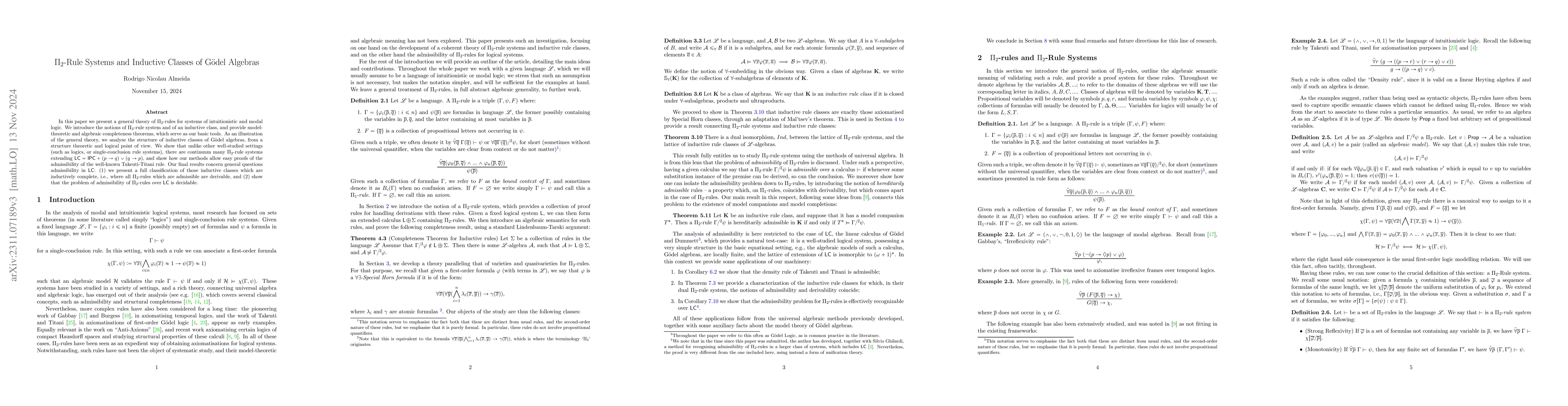 This paper develops a theory of $\Pi_{2}$-rule systems for intuitionistic and modal logic, introducing $\Pi_{2}$-rule systems and inductive classes, and provides completeness theorems. It analyzes Gödel algebras' inductive classes, demonstrating the existence of continuum many $\Pi_{2}$-rule systems extending $\mathsf{LC}$, and classifies inductively complete classes while proving the decidability of $\Pi_{2}$-rule admissibility over $\mathsf{LC}$.