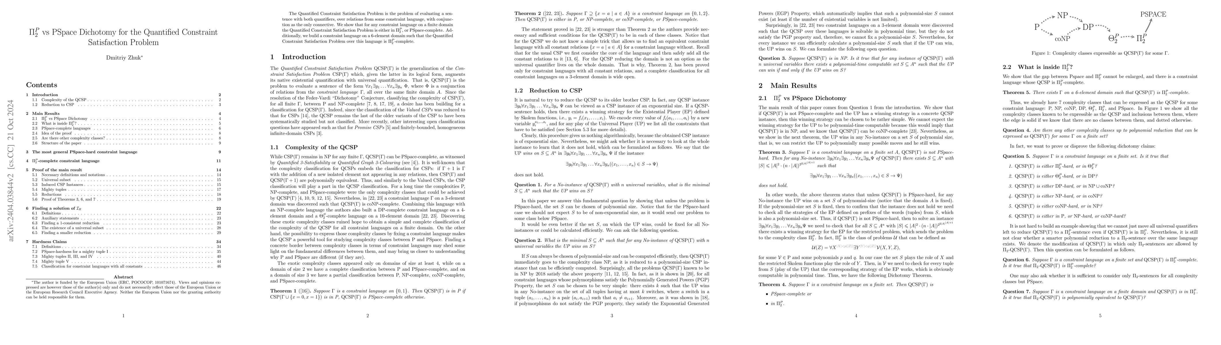 This research demonstrates that the Quantified Constraint Satisfaction Problem, involving both universal and existential quantifiers over relations, is either in the complexity class $\Pi_{2}^{P}$ or PSpace-complete for finite domains. A specific 6-element domain language is constructed to show $\Pi_{2}^{P}$-completeness.