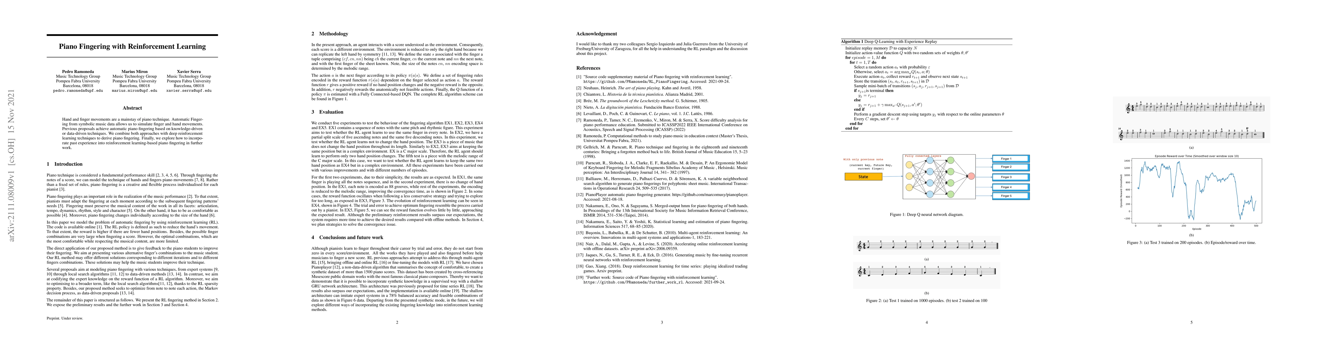 This paper combines knowledge-driven and data-driven methods with deep reinforcement learning to derive automatic piano fingering from symbolic music data. Future work aims to integrate past experience into the reinforcement learning approach for improved fingering.