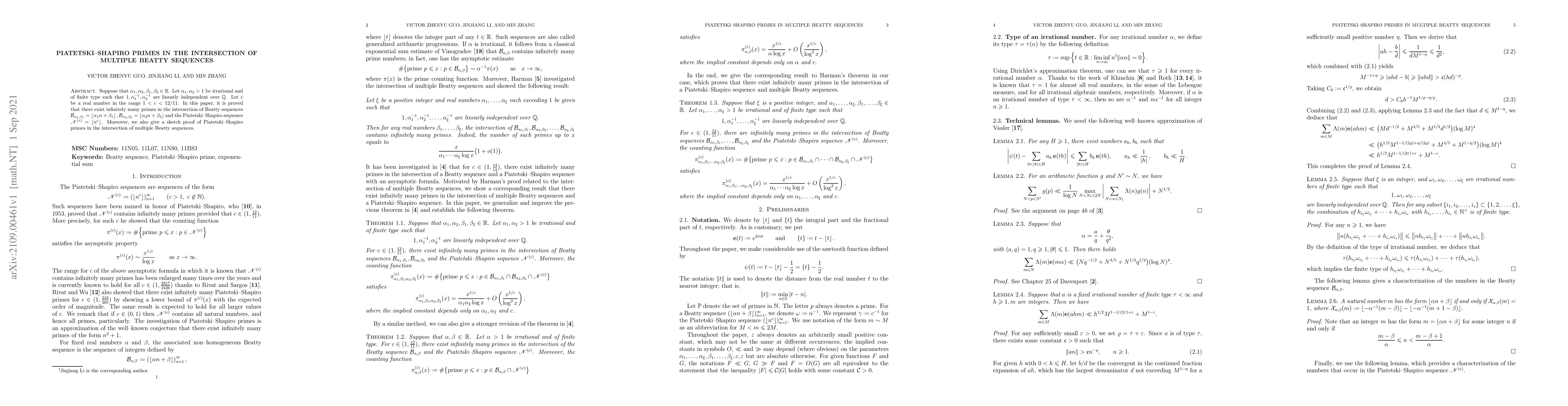 This paper proves the existence of infinitely many primes in the intersection of multiple Beatty sequences defined by irrational numbers $\alpha_1, \alpha_2$ and constants $\beta_1, \beta_2$, and the Piatetski-Shapiro sequence $\mathscr{N}^{(c)}$. A sketch proof is also provided for Piatetski-Shapiro primes in the intersection of more general Beatty sequences.