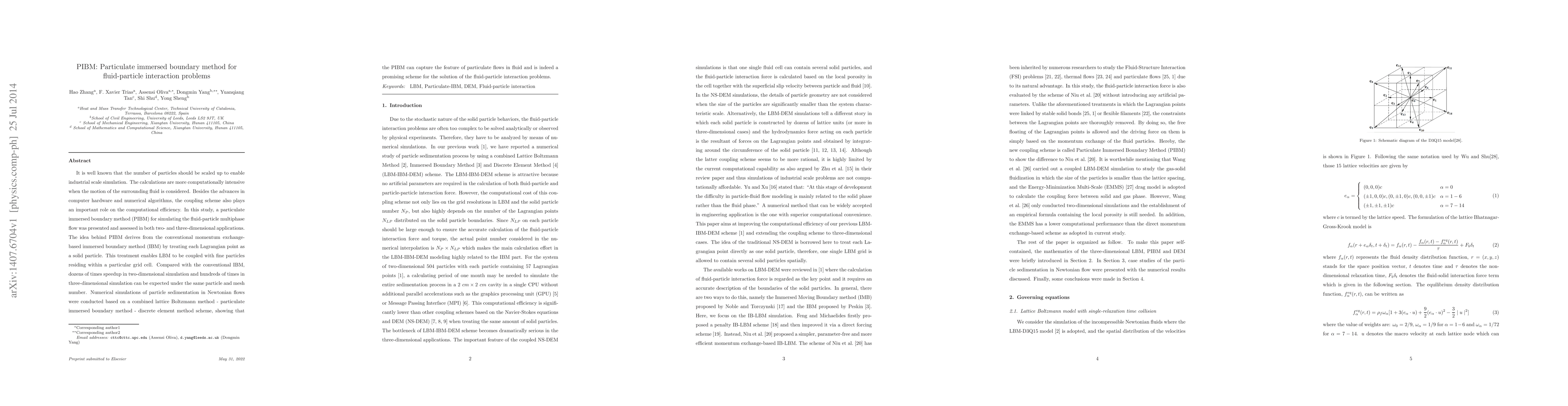 The paper introduces the Particulate Immersed Boundary Method (PIBM) for efficient simulation of fluid-particle interactions, achieving significant speedups over conventional methods, and demonstrates its effectiveness through numerical simulations of particle sedimentation in Newtonian flows.
