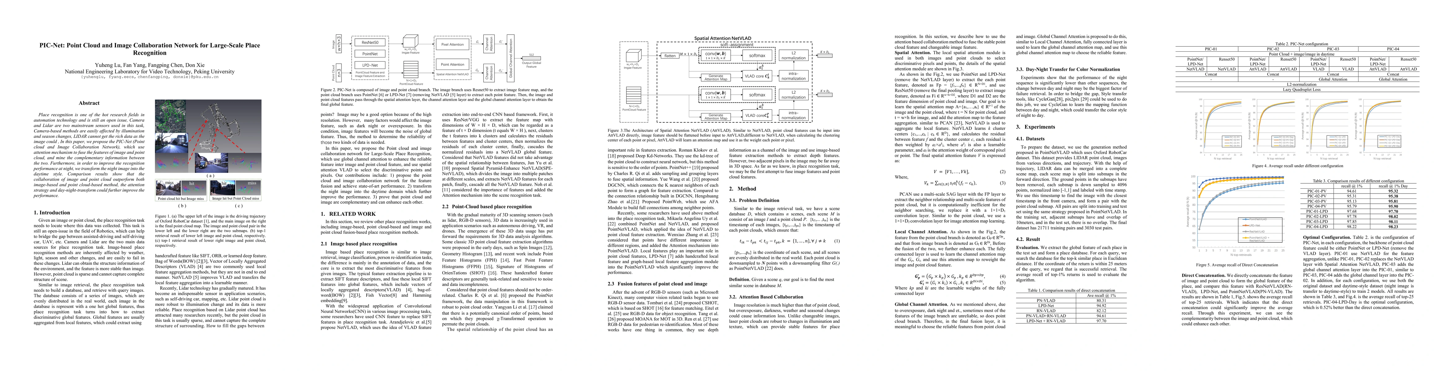 PIC-Net integrates image and point cloud data using an attention mechanism to enhance large-scale place recognition, addressing the limitations of both sensor types. The method also includes a day-night transformation to improve nighttime performance, demonstrating superior results compared to single-sensor approaches.