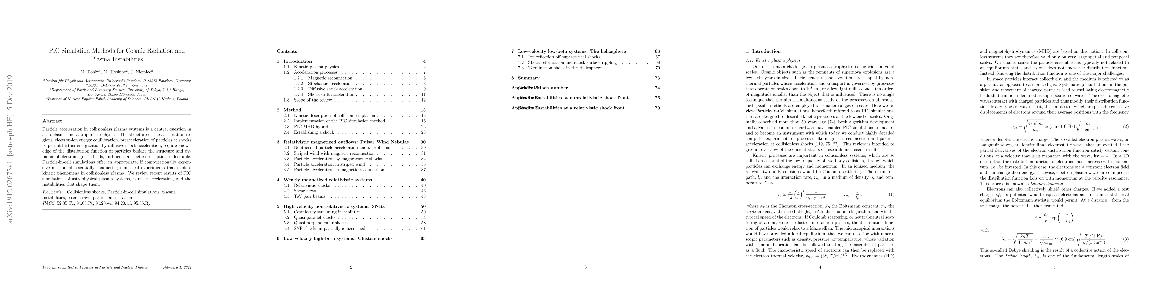 Researchers used Particle-in-Cell simulations to study particle acceleration in cosmic radiation and plasma instabilities, revealing new insights into the structure of acceleration regions and particle behavior.