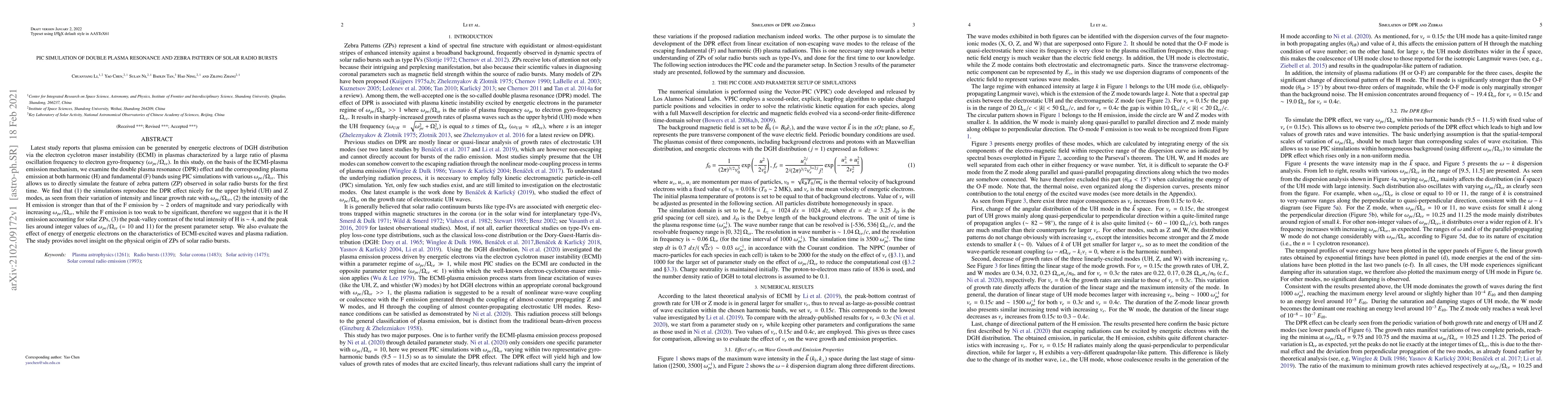 This study uses PIC simulations to investigate the double plasma resonance (DPR) effect and zebra pattern (ZP) in solar radio bursts, finding that the DPR mechanism reproduces the observed DPR effect and that the harmonic emission is significantly stronger than the fundamental emission, suggesting it is responsible for the ZPs. The simulations also reveal a peak-valley contrast of around 4 for the harmonic emission.
