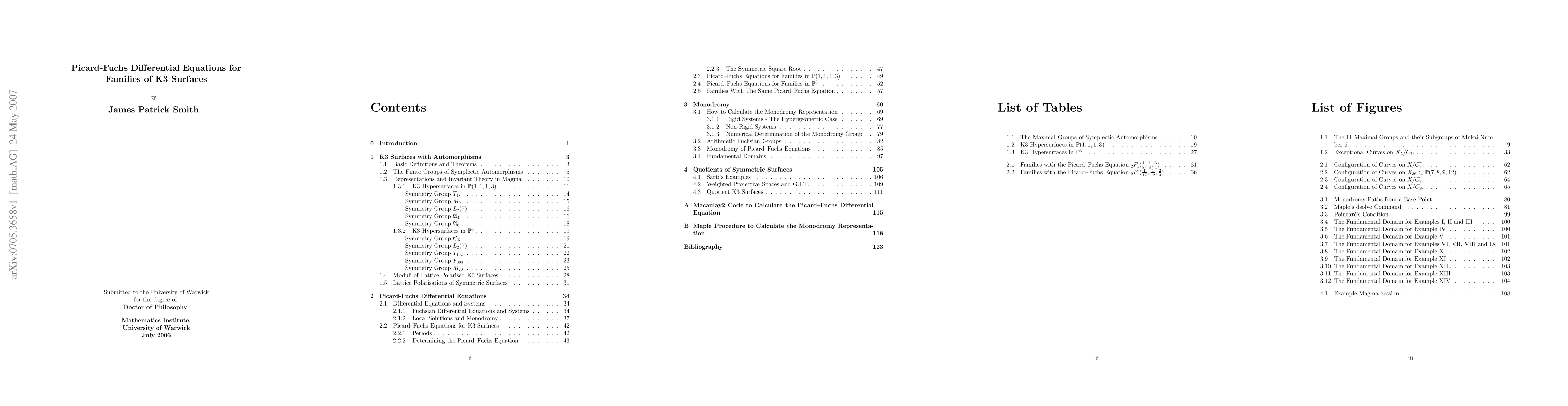 This thesis studies some examples of families of K3 surfaces with Picard lattices of maximal rank. These families occur as invariants of finite automorphism groups. The Picard-Fuchs differential equations describing the variation of Hodge structure in these families are considered. Techniques are developed to find the corresponding monodromy groups as arithmetic Fuchsian groups acting on the families' period spaces.