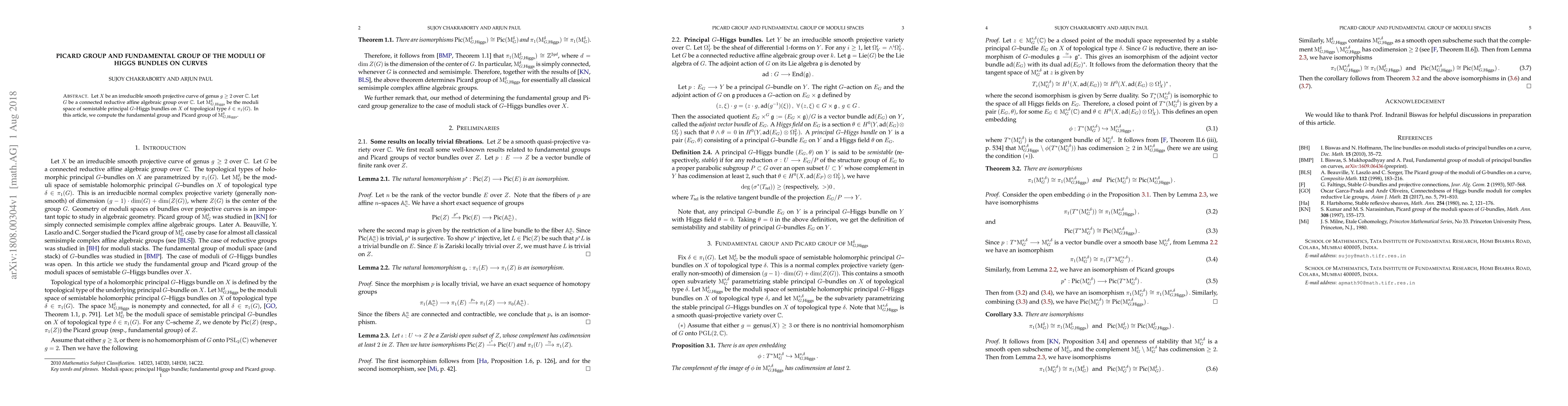 This paper computes the fundamental group and Picard group of the moduli space of semistable principal $G$-Higgs bundles on a smooth projective curve of genus $g \geq 2$, providing insights into the topological and algebraic structure of these moduli spaces.