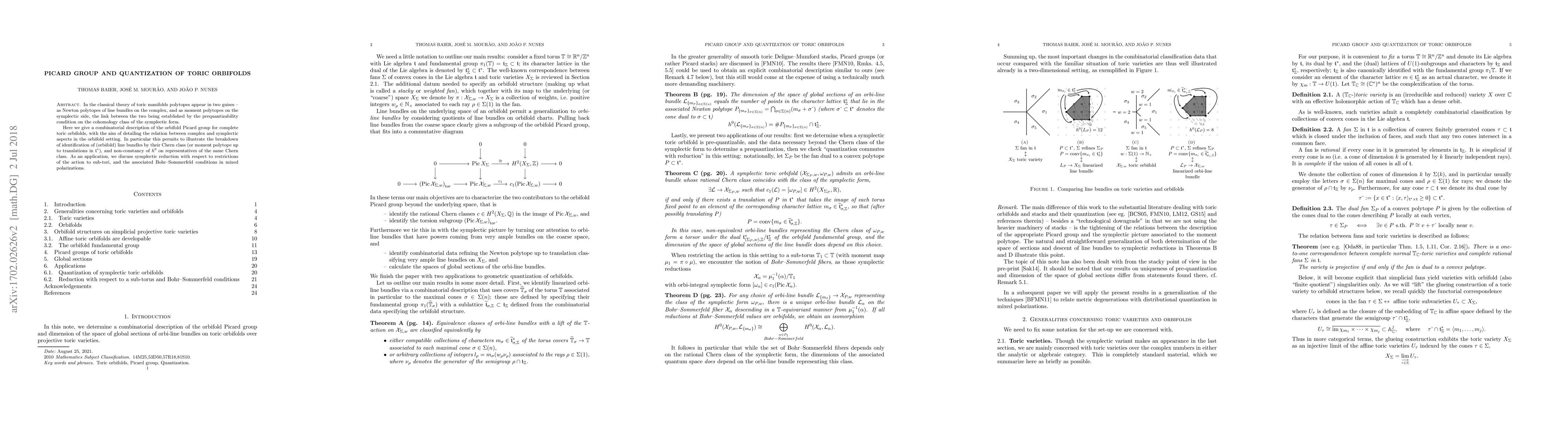 In the classical theory of toric manifolds polytopes appear in two guises -- as Newton polytopes of line bundles on the complex, and as moment polytopes on the symplectic side, the link between the two being established by the prequantizability condition on the cohomology class of the symplectic form. Here we give a combinatorial description of the orbifold Picard group for complete toric orbifolds, with the aim of detailing the relation between complex and symplectic aspects in the orbifold setting. In particular this permits to illustrate the breakdown of identification of (orbifold) line bundles by their Chern class (or moment polytope up to translations in $\mathfrak{t}^\ast$), and non-constancy of $h^0$ on representatives of the same Chern class. As an application, we discuss symplectic reduction with respect to restrictions of the action to sub-tori, and the associated Bohr--Sommerfeld conditions in mixed polarizations.