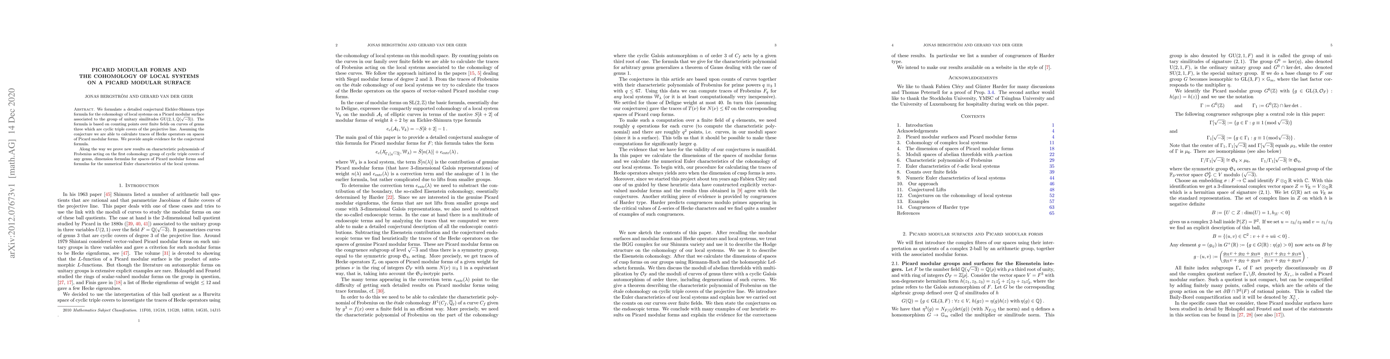 This paper proposes a conjectural Eichler-Shimura formula for the cohomology of local systems on a Picard modular surface, backed by evidence from point counts on genus three curves. It also proves new results on Frobenius characteristic polynomials and dimension formulas for spaces of Picard modular forms.