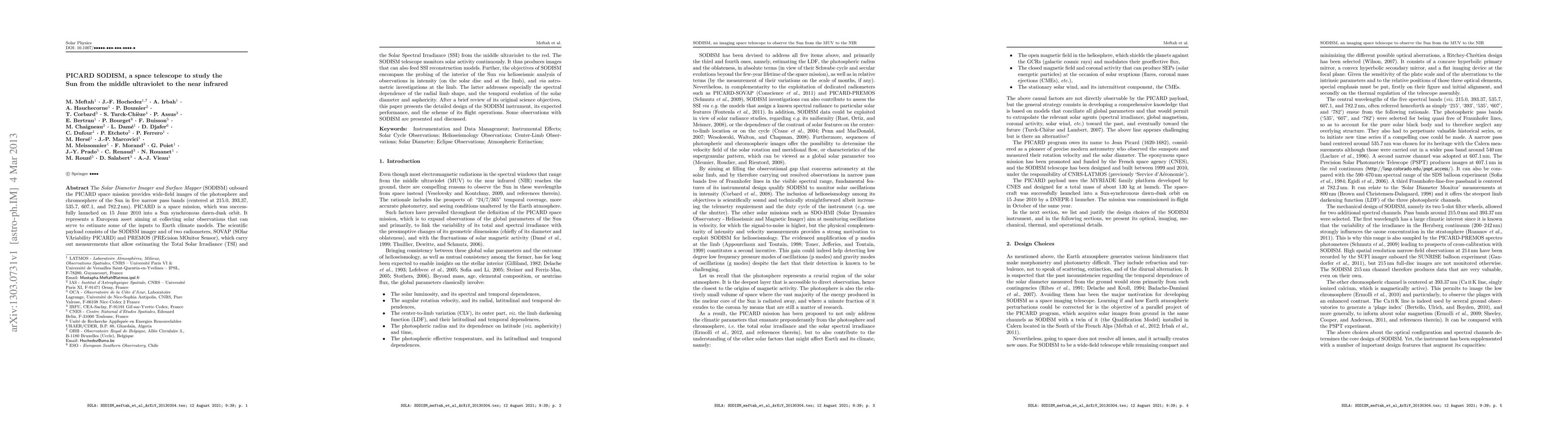The Solar Diameter Imager and Surface Mapper (SODISM) on board the PICARD space mission provides wide-field images of the photosphere and chromosphere of the Sun in five narrow pass bands (centered at 215.0, 393.37, 535.7, 607.1, and 782.2 nm). PICARD is a space mission, which was successfully launched on 15 June 2010 into a Sun synchronous dawn-dusk orbit. It represents a European asset aiming at collecting solar observations that can serve to estimate some of the inputs to Earth climate models. The scientific payload consists of the SODISM imager and of two radiometers, SOVAP (SOlar VAriability PICARD) and PREMOS (PREcision MOnitor Sensor), which carry out measurements that allow estimating the Total Solar Irradiance (TSI) and the Solar Spectral Irradiance (SSI) from the middle ultraviolet to the red. The SODISM telescope monitors solar activity continuously. It thus produces images that can also feed SSI reconstruction models. Further, the objectives of SODISM encompass the probing of the interior of the Sun via helioseismic analysis of observations in intensity (on the solar disc and at the limb), and via astrometric investigations at the limb. The latter addresses especially the spectral dependence of the radial limb shape, and the temporal evolution of the solar diameter and asphericity. After a brief review of its original science objectives, this paper presents the detailed design of the SODISM instrument, its expected performance, and the scheme of its flight operations. Some observations with SODISM are presented and discussed.