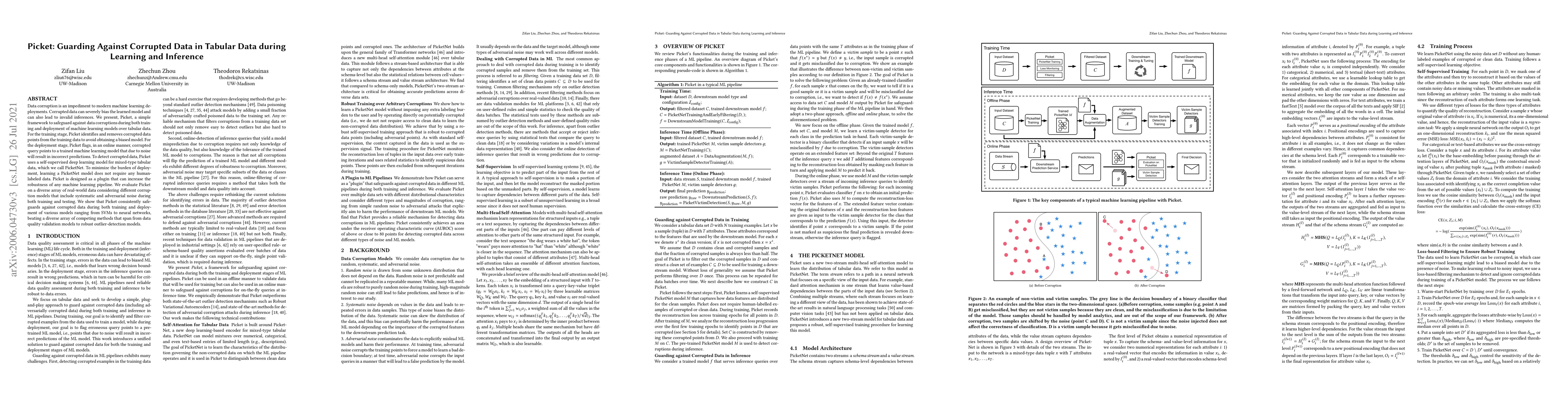 Picket detects corrupted data in machine learning models using a self-supervised deep learning model, improving robustness during training and deployment, outperforming competing methods.