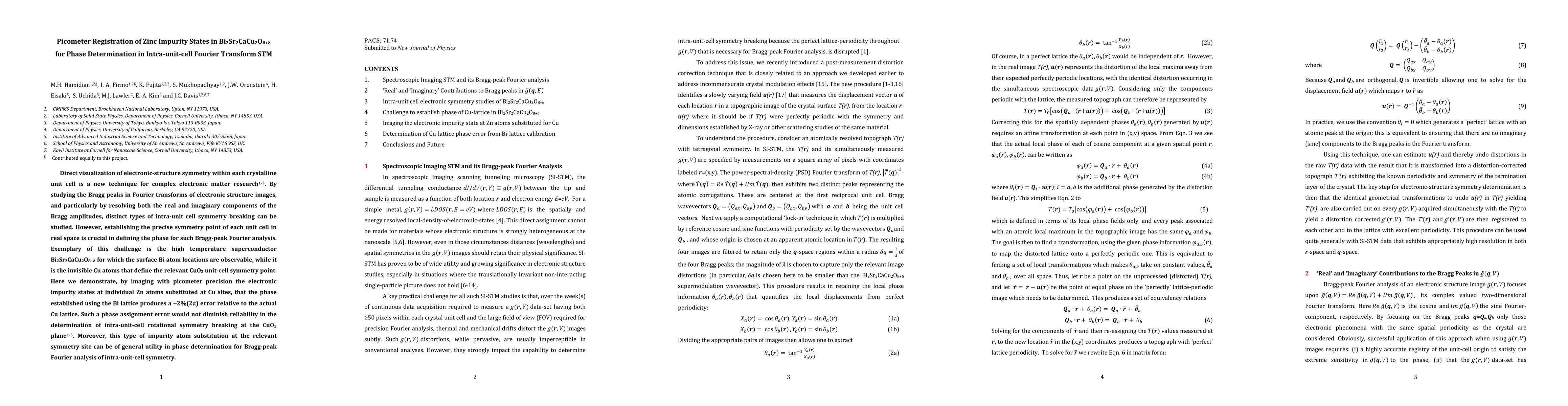 This paper demonstrates picometer-precision imaging of Zn impurity states in Bi2Sr2CaCu2O8+d using Fourier Transform Scanning Tunneling Microscopy (STM) to determine intra-unit-cell symmetry. The study reveals a ~2% phase error when using the Bi lattice instead of the Cu lattice, highlighting the utility of Zn substitution for accurate phase determination in Bragg-peak Fourier analysis.